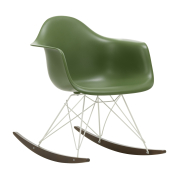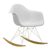 Krzesło bujane Eames Plastic Armchair RE RAR to jeden z najbardziej rozpoznawalnych projektów Charlesa i Raya Eamesów, który do dziś świetnie odnajduje się w nowoczesnych wnętrzach. Charakterystyczna forma kubełkowego siedziska z podłokietnikami została osadzona na stalowej podstawie z drewnianymi płozami, tworząc wygodne i stylowe krzesło bujane do salonu, strefy relaksu lub poczekalni.