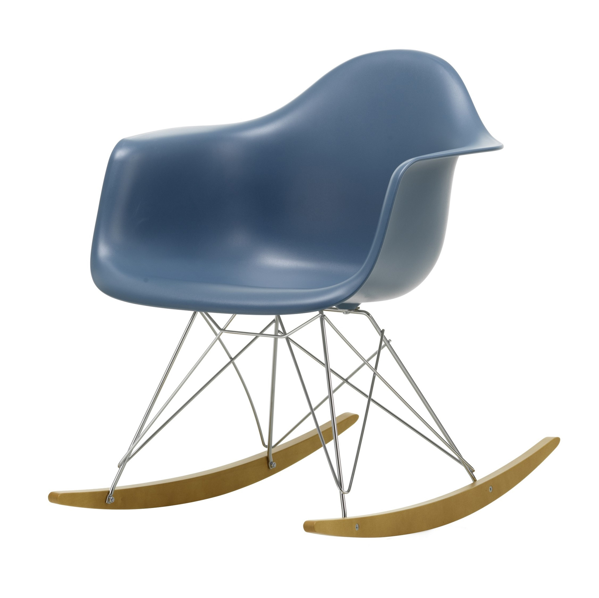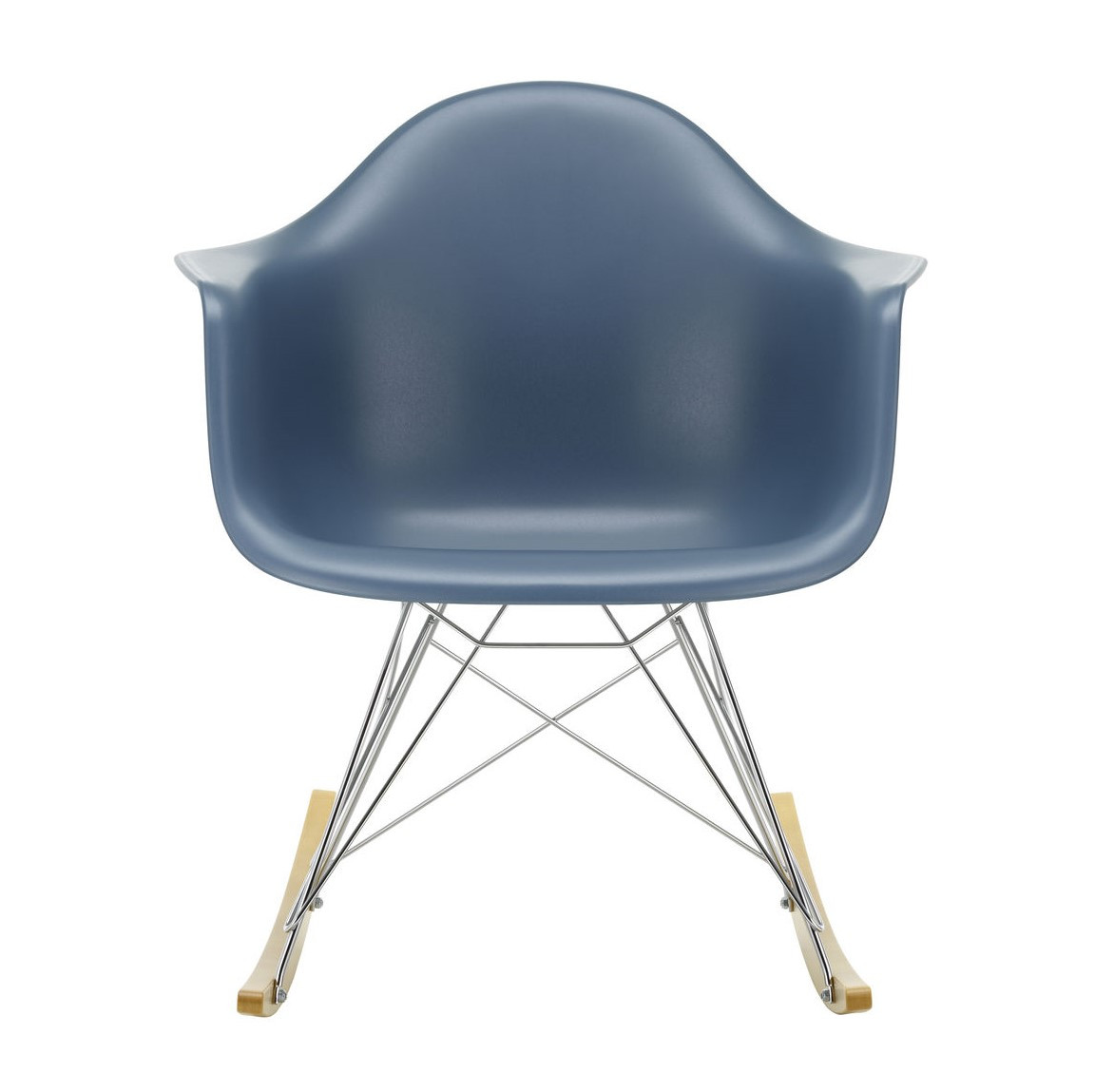 Krzesło bujane Eames Plastic Armchair RE RAR to jeden z najbardziej rozpoznawalnych projektów Charlesa i Raya Eamesów, który do dziś świetnie odnajduje się w nowoczesnych wnętrzach. Charakterystyczna forma kubełkowego siedziska z podłokietnikami została osadzona na stalowej podstawie z drewnianymi płozami, tworząc wygodne i stylowe krzesło bujane do salonu, strefy relaksu lub poczekalni.