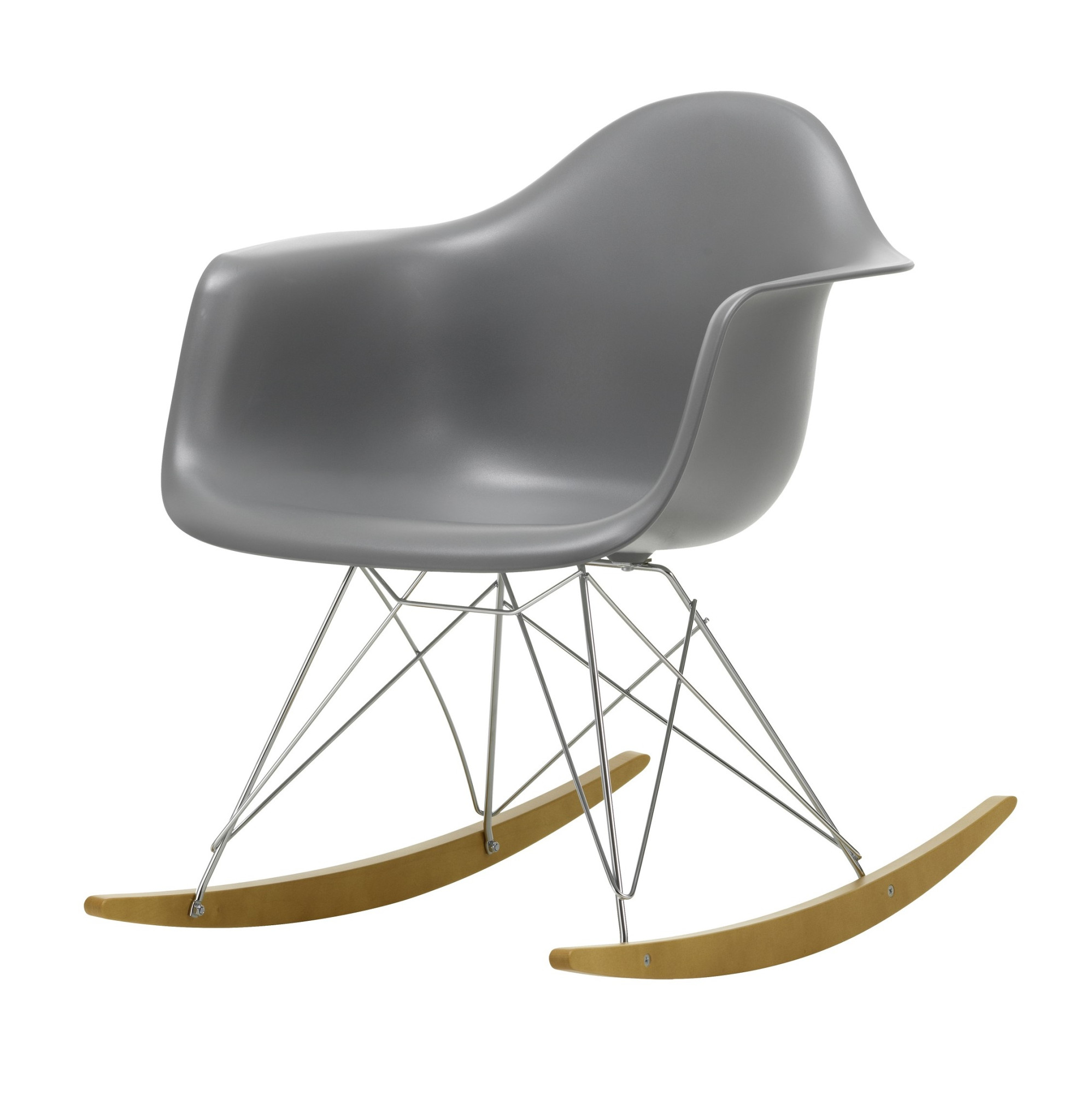 Krzesło bujane Eames Plastic Armchair RE RAR to jeden z najbardziej rozpoznawalnych projektów Charlesa i Raya Eamesów, który do dziś świetnie odnajduje się w nowoczesnych wnętrzach. Charakterystyczna forma kubełkowego siedziska z podłokietnikami została osadzona na stalowej podstawie z drewnianymi płozami, tworząc wygodne i stylowe krzesło bujane do salonu, strefy relaksu lub poczekalni.