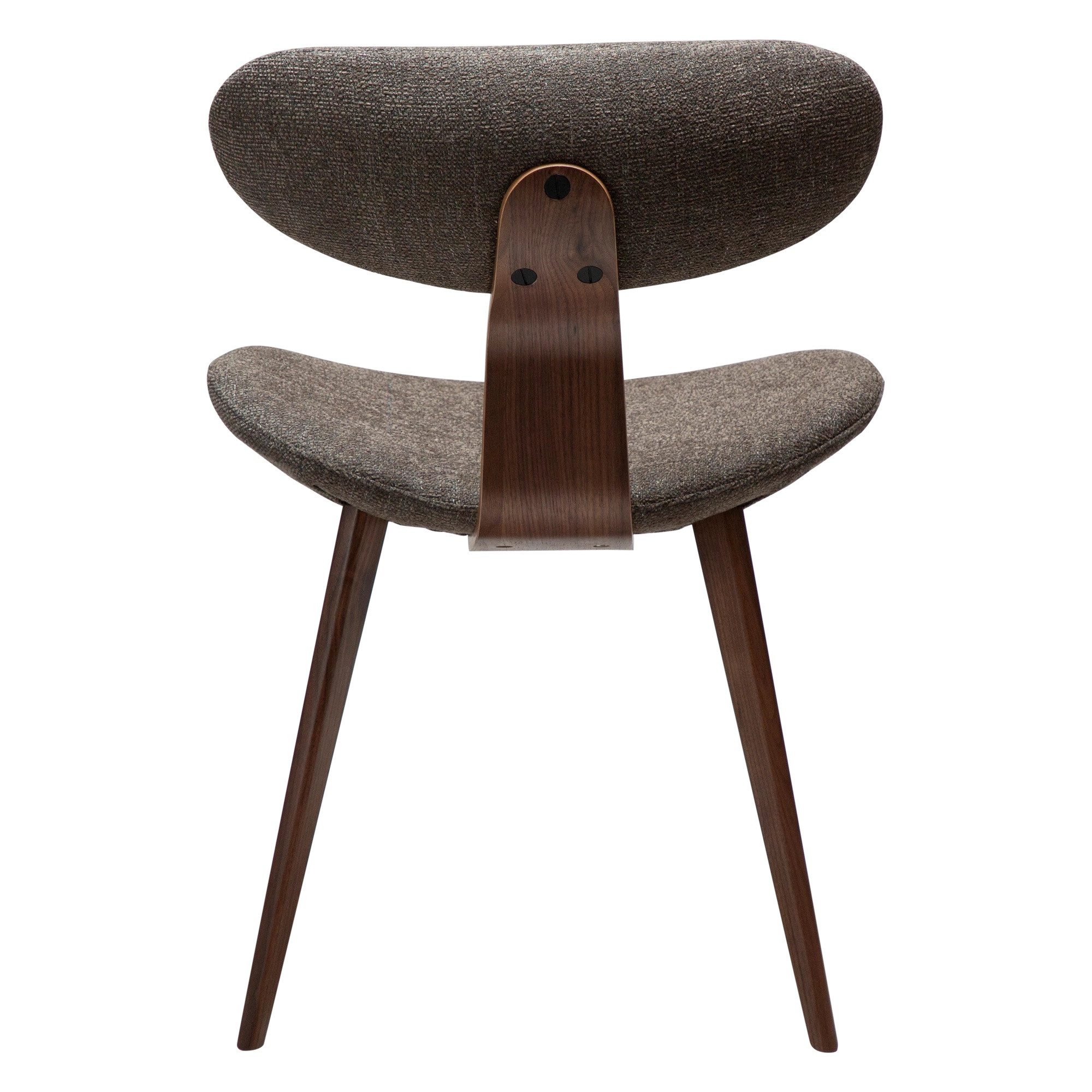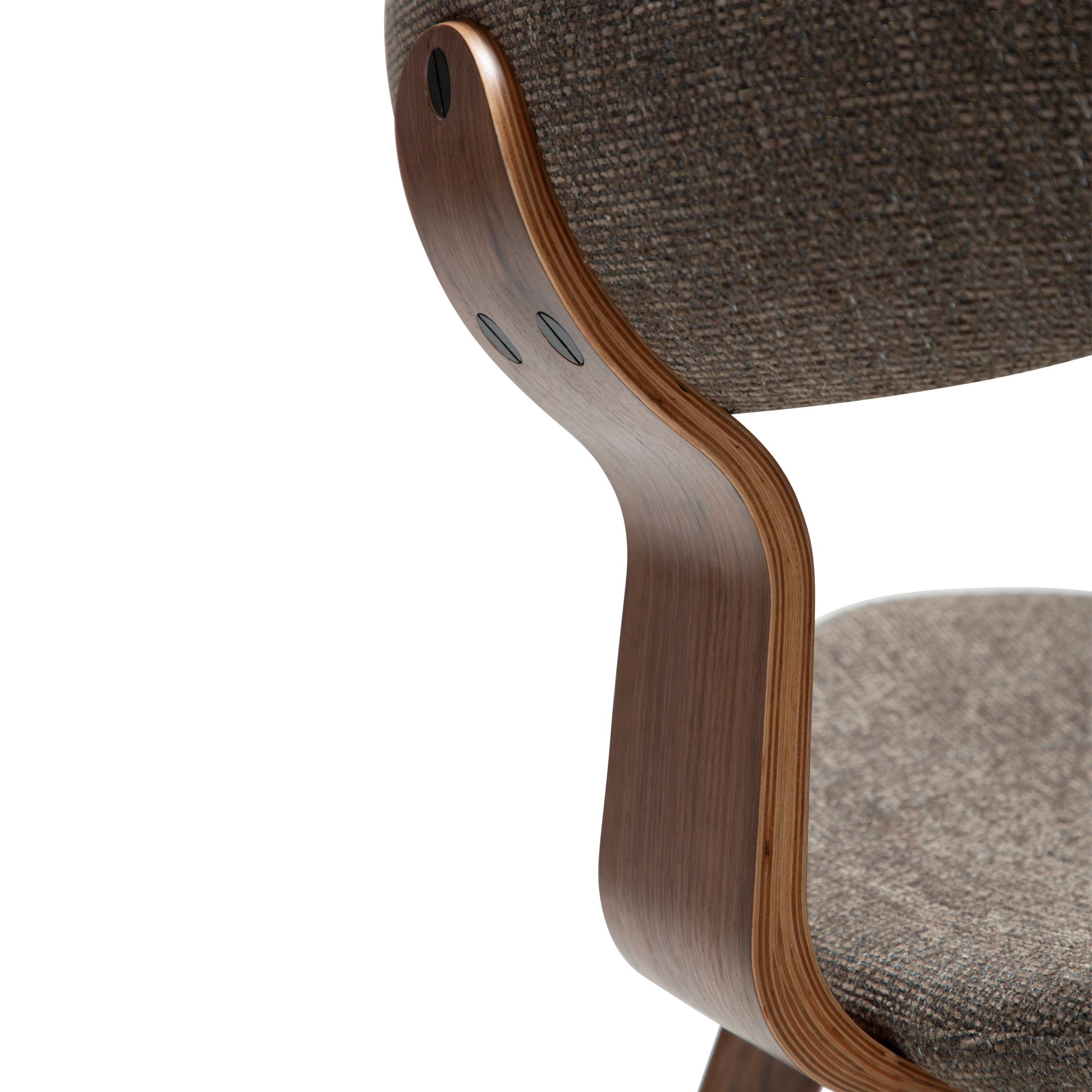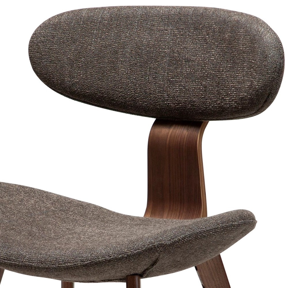 Tapicerka z tkaniny bouclé wyróżnia się miękką, pętelkową strukturą i przyjemną, wyrazistą fakturą, która podkreśla charakter mebla i dodaje mu przytulności. Stabilne nogi z litego drewna orzecha domykają całość, nadając projektowi naturalnej równowagi między lekkością a solidnością.
