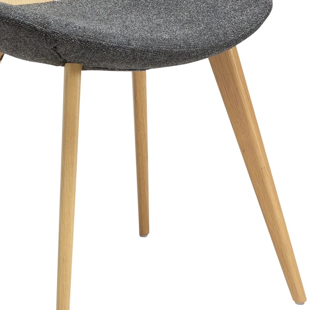 Tapicerka z tkaniny bouclé wyróżnia się miękką, pętelkową strukturą i przyjemną, wyrazistą fakturą, która podkreśla charakter mebla i dodaje mu przytulności. Stabilne nogi z litego drewna w wykończeniu bielonego dębu domykają całość, nadając projektowi naturalnej równowagi między lekkością a solidnością.