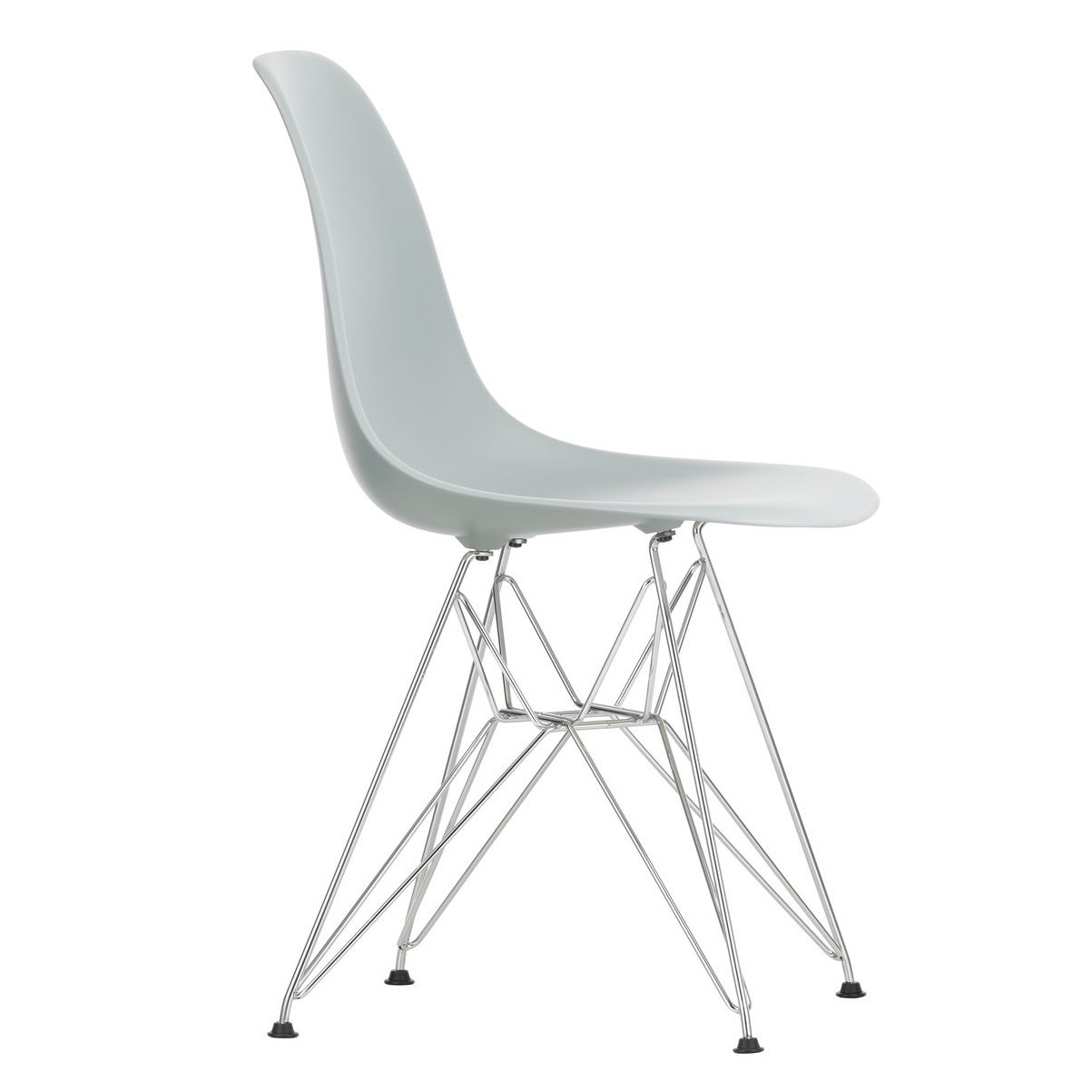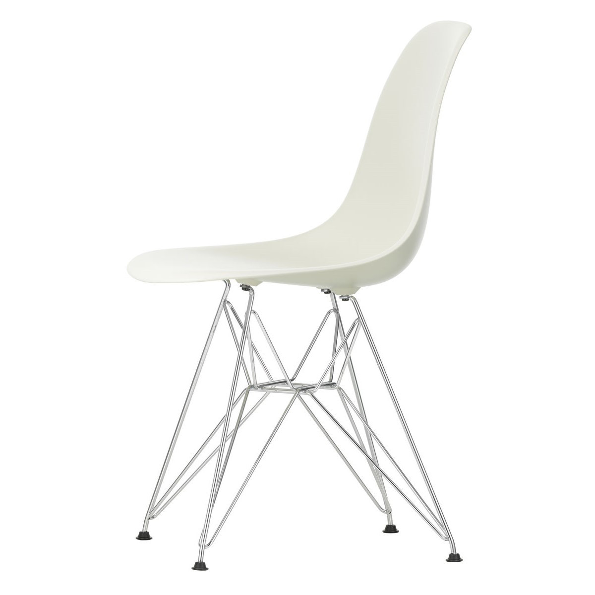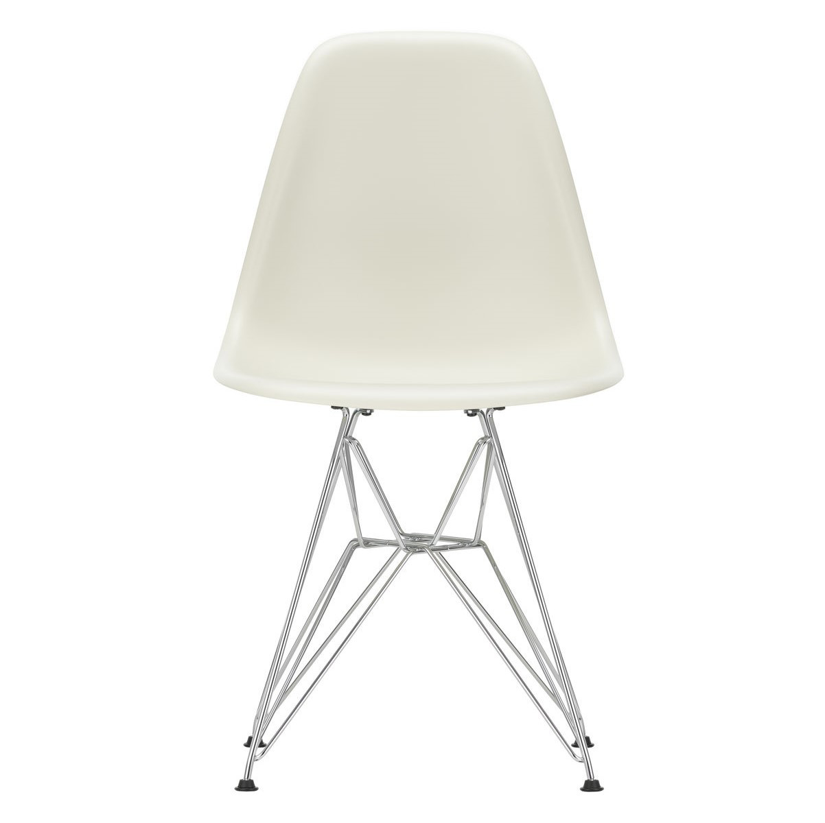 Eames Plastic Side Chair RE DSR marki Vitra to ikona nowoczesnego designu zaprojektowana przez Charlesa i Ray Eames w 1950 roku. Chromowana podstawa typu „Eiffel Tower” łączy elegancję z wyjątkową stabilnością, a siedzisko z recyklingowanego tworzywa doskonale dopasowuje się do sylwetki, zapewniając komfort i trwałość przez lata. To nowoczesne krzesło jest odporne na warunki atmosferyczne, co sprawia, że jest odpowiednie do użytku wewnętrznego i zewnętrznego.