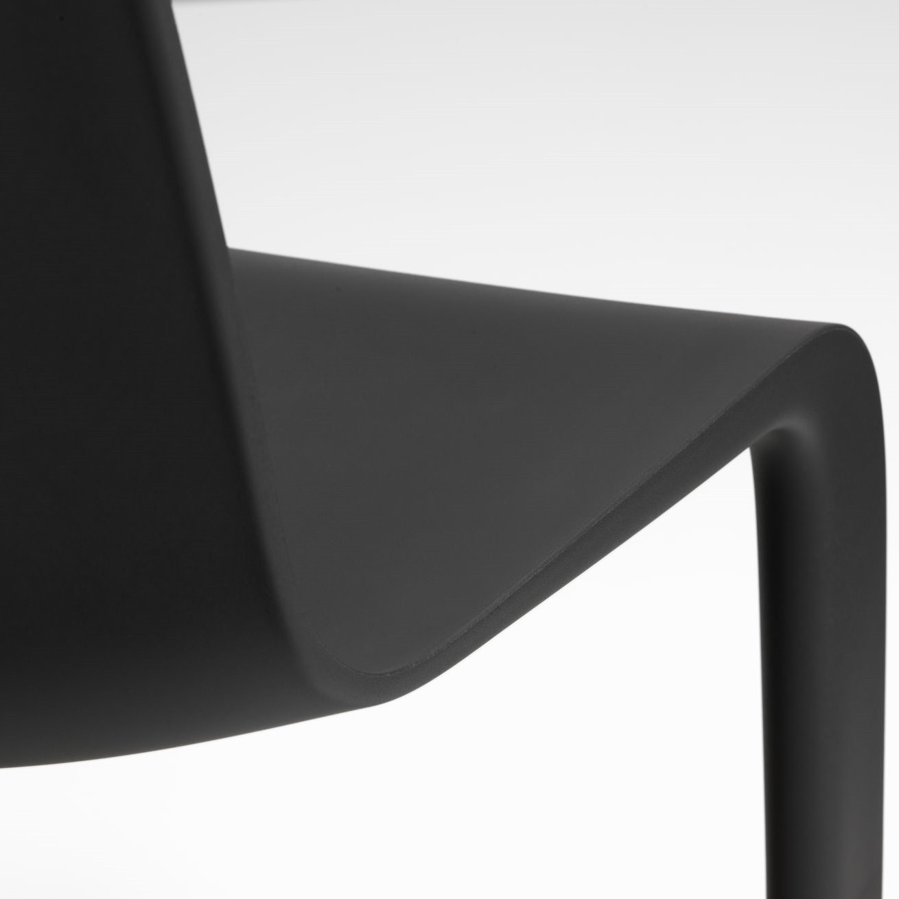 EVO-C projektu Jaspera Morrisona to nowoczesna interpretacja klasycznego krzesła na płozach stworzona w całości z barwionego w masie polipropylenu, w 100% nadającego się do recyklingu. Dzięki technologii formowania gazowo-wtryskowego, tworzywo osiąga wytrzymałość i sprężystość porównywalną z konstrukcjami stalowymi, zachowując przy tym wyjątkową lekkość. Jednolita, rzeźbiarska forma płynnie łączy oparcie, siedzisko i podstawę, tworząc krzesło o minimalistycznej elegancji i ergonomicznym komforcie.