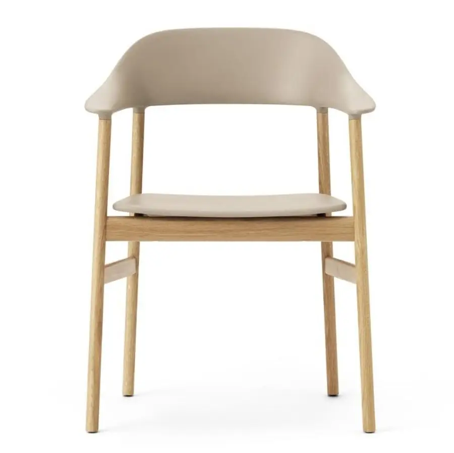 Krzesło Herit marki Normann Copenhagen to synonim skandynawskiego designu jak również gwarancja wysokiego komfortu użytkowania. Konstrukcja krzesła została wykonana z dębowego drewna natomiast rdzeń plastikowego siedziska i oparcia stanowi pianka z tworzywa dzięki czemu krzesło gwarantuje wygodę podczas wypoczynku i optymalne oparcie dla pleców.