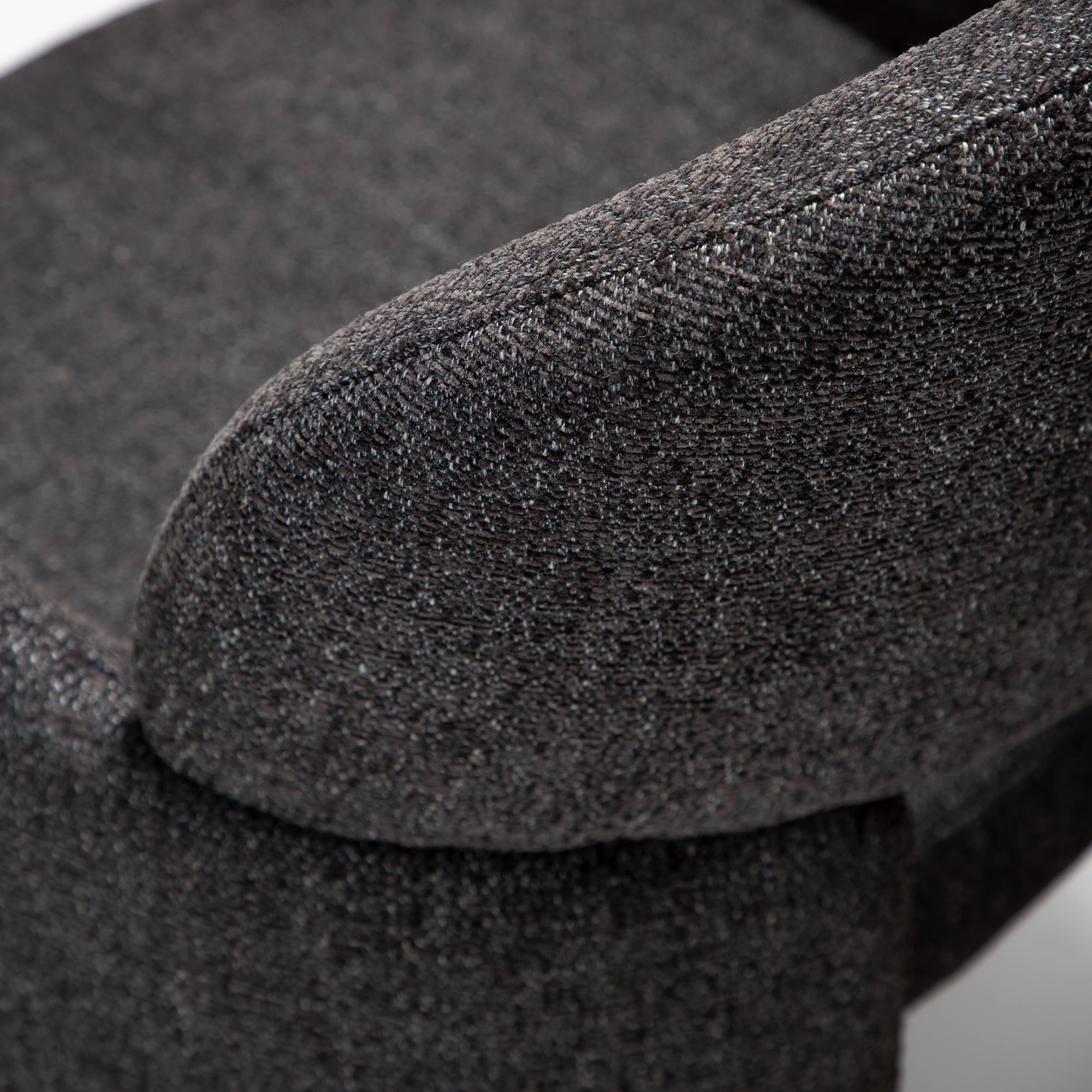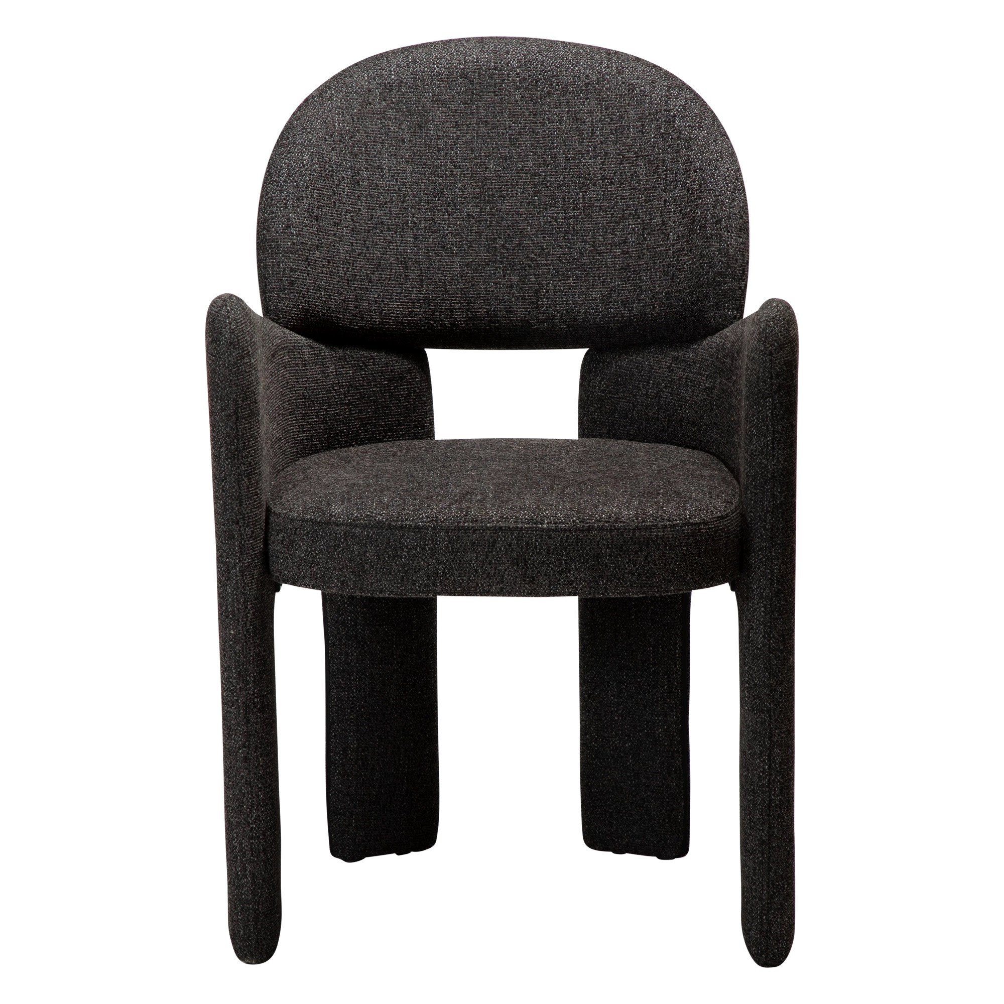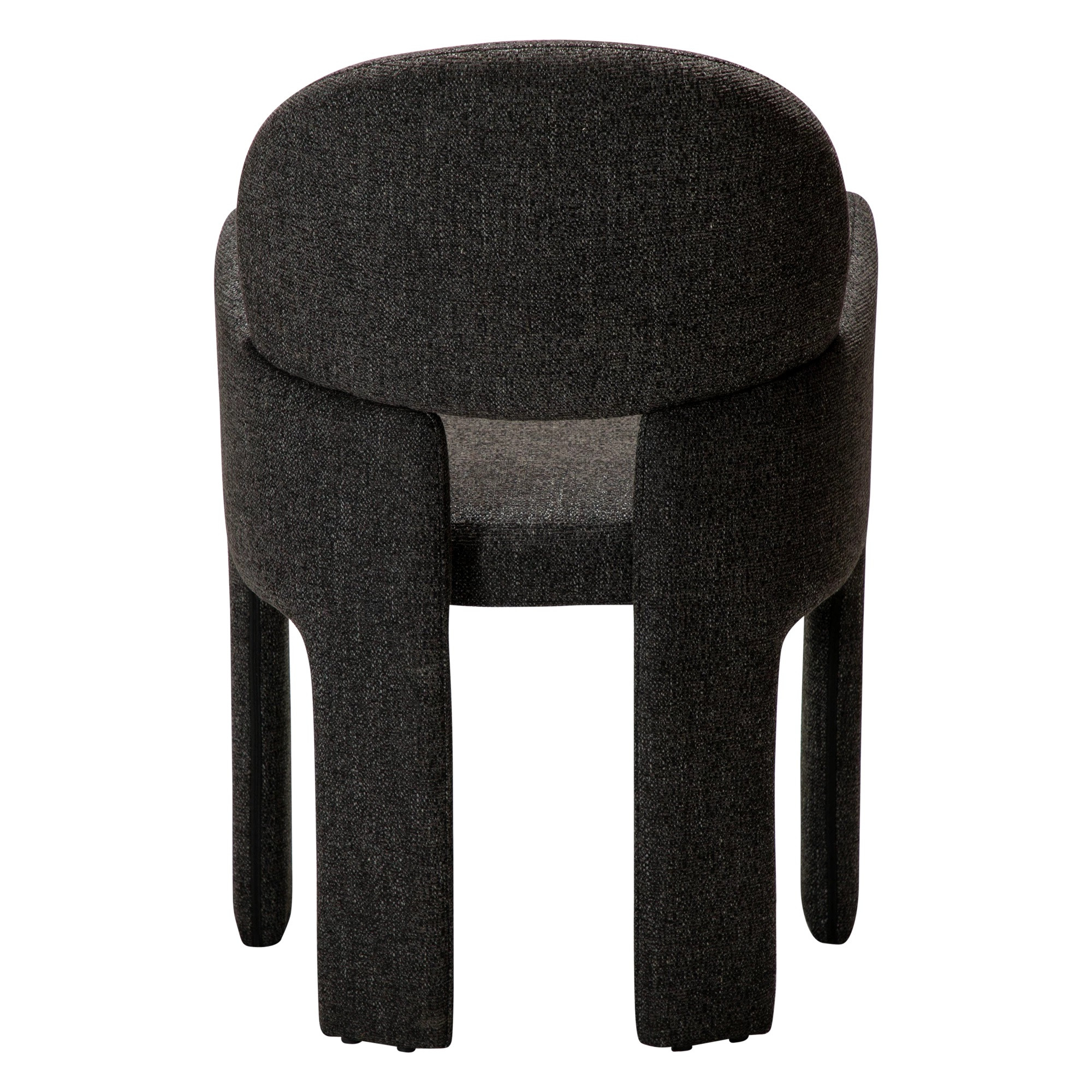 Model wykonano w modnej tkaninie bouclé w kolorze czarnym – przyjemnej w dotyku, miękkiej i niezwykle efektownej wizualnie. Krzesło dostępne jest również w innych wariantach tapicerki, co pozwala łatwo dopasować je do różnych aranżacji wnętrz.