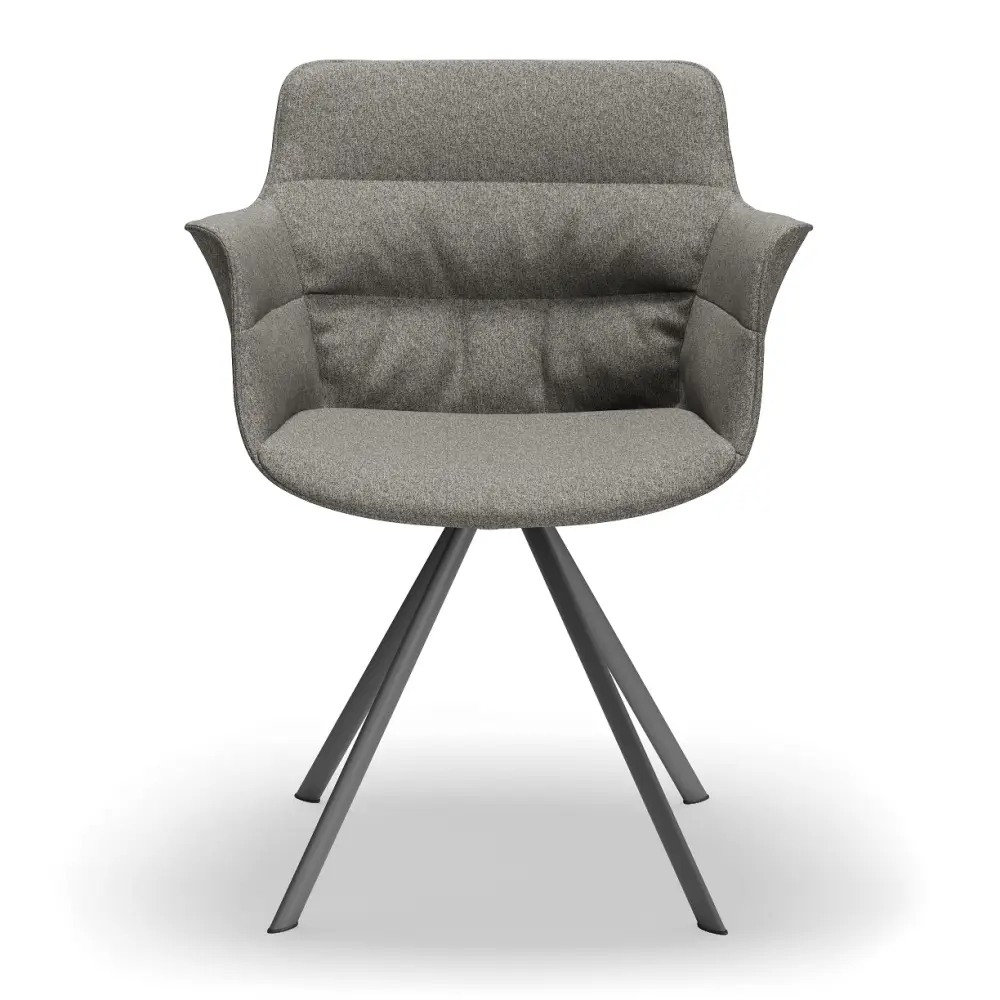 Zarówno siedzisko krzesła jak i podstawa to możliwość wyboru wykończenia z obszernego wzornika do wyboru. Dołączony wzornik tkanin to przykładowe kolory. Pełna kolorystyka produktu w salonach MOMA studio.