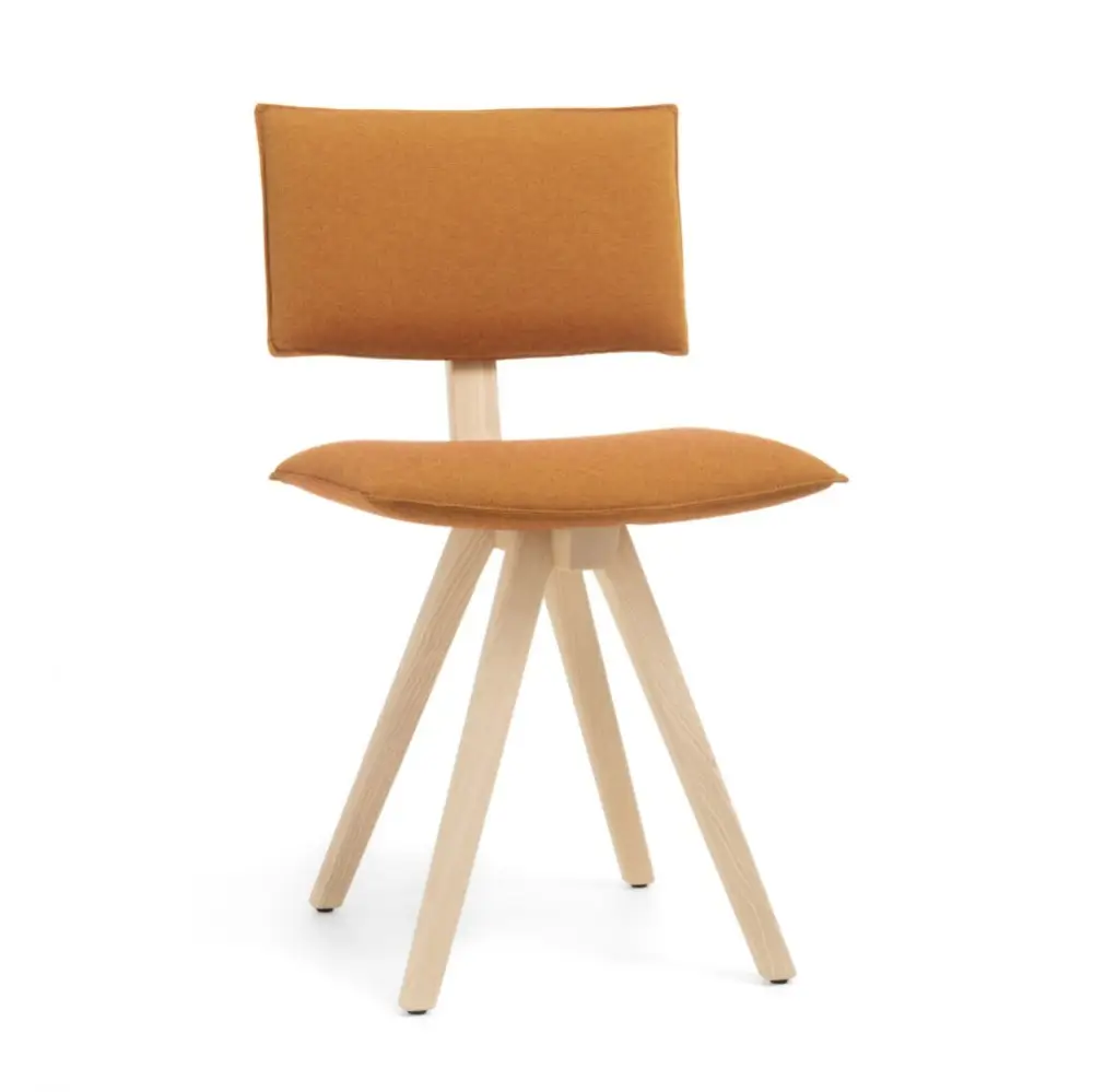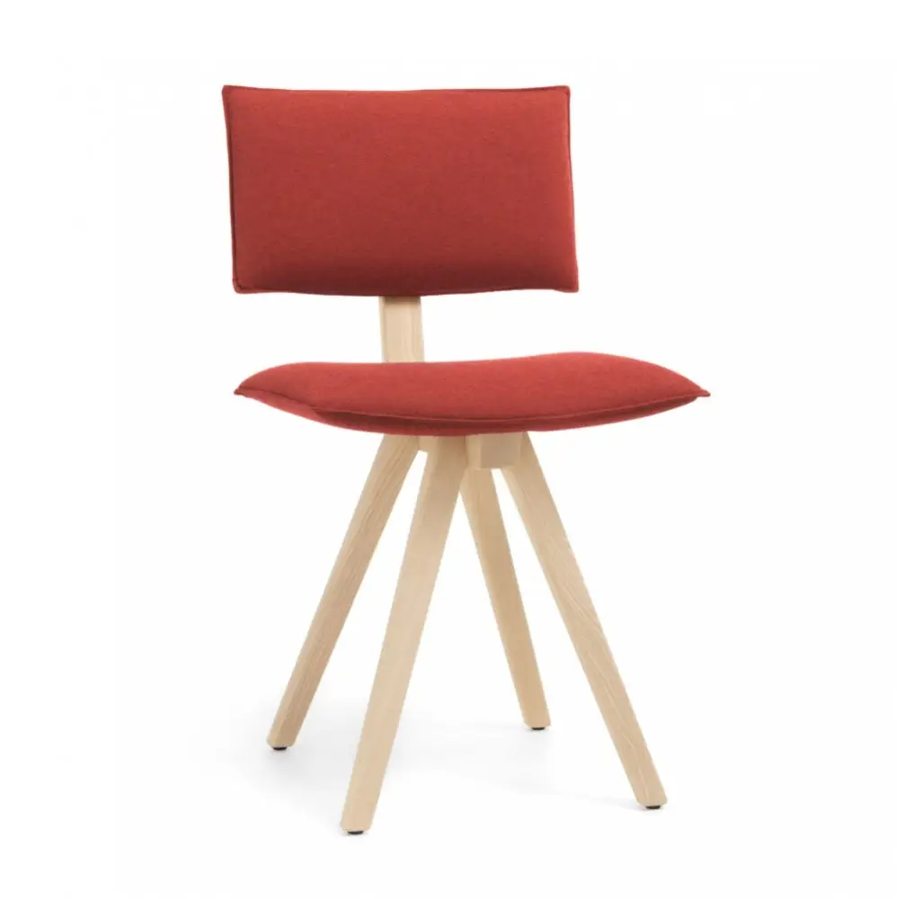 Trave to nowoczesne krzesło do jadalni z katalogu włoskiej marki Magis. Innowacyjne spojrzenie na koncepcję litego drewna opierające się na charakterystycznej wygiętej ramie z litego jesionu, która staje się centralnym punktem całego projektu. Profilowany parą pręt jest jedynym elementem, do którego przymocowane są nogi i dwie poduszki z materiału, które służą jako siedzisko i oparcie.