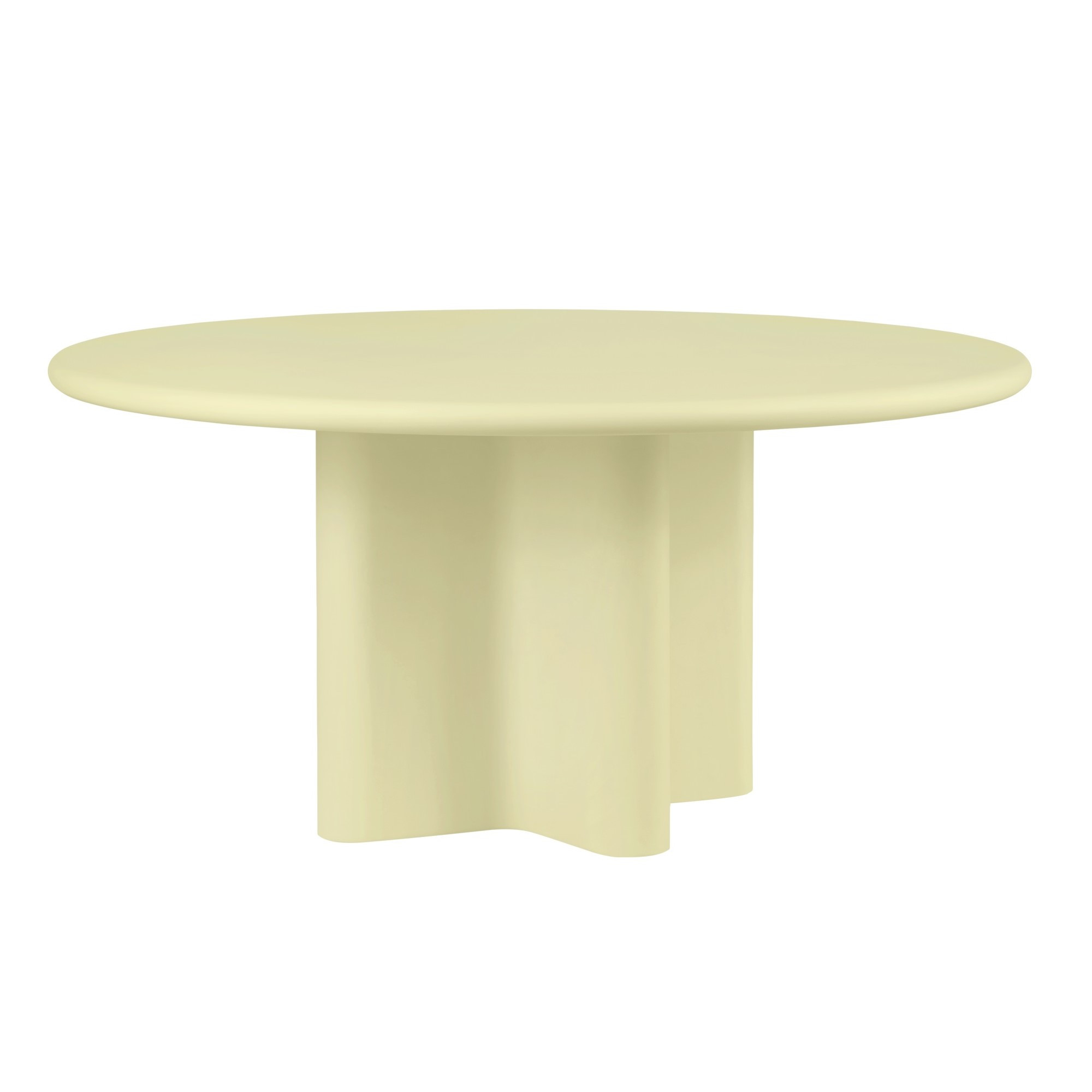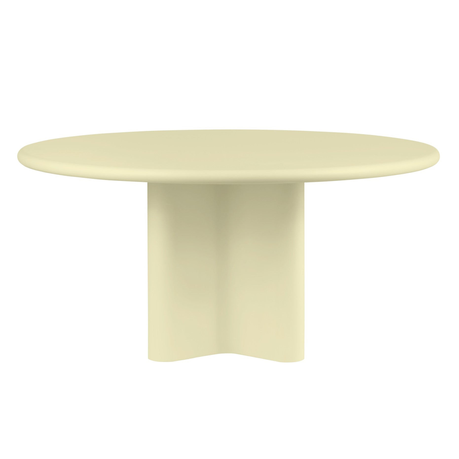 Ten nowoczesny stół do jadalni ma blat w kolorze Burro (kremowym), który nadaje wnętrzu ciepły, elegancki ton, a klient może opcjonalnie wybrać inny kolor z palety 13 dostępnych opcji. Okrągła forma dostępna jest w średnicach Ø140, Ø160 i Ø180 cm, dzięki czemu stół doskonale sprawdzi się zarówno w domowej jadalni, jak i w reprezentacyjnych wnętrzach publicznych — restauracjach, lobby czy salach konferencyjnych.