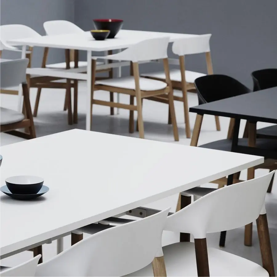 Union to kolekcja stołów o minimalistycznym i uniwersalnym designie, które doskonale zaaranżują domowe jak i komercyjne wnętrza. Seria liczy 11 stołów zarówno okrągłych jak i prostokątnych w różnych rozmiarach i kolorach. Blaty wykonano z laminatu odpornego na zarysowania i powstawanie na nich odcisków palców natomiast stelaż ze stali malowanej proszkowo. Mosiężne detale w postaci śrub mocujących i wykończeń nóżek przełamują jednolity kolor mebla dodając tym samym całości sporej elegancji.