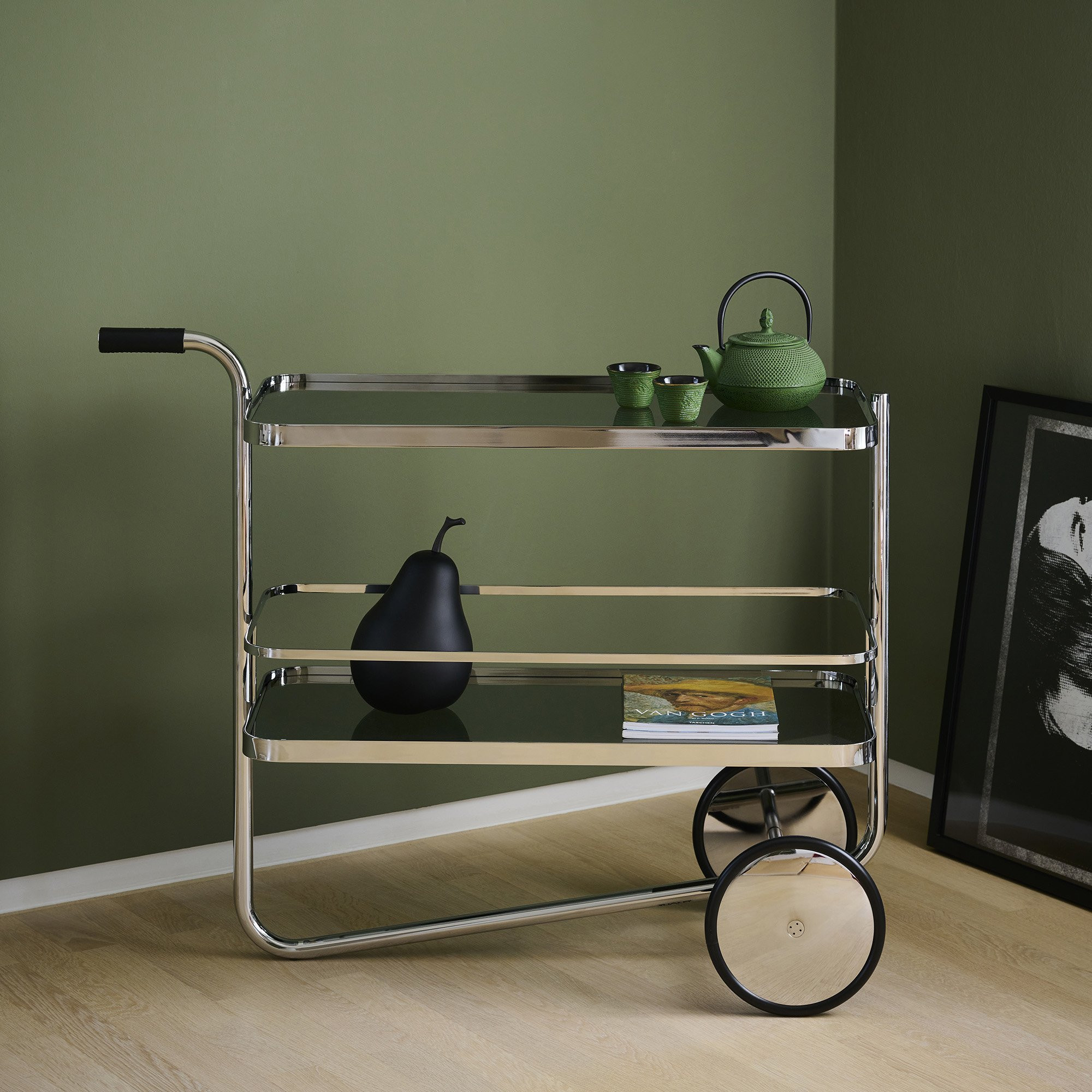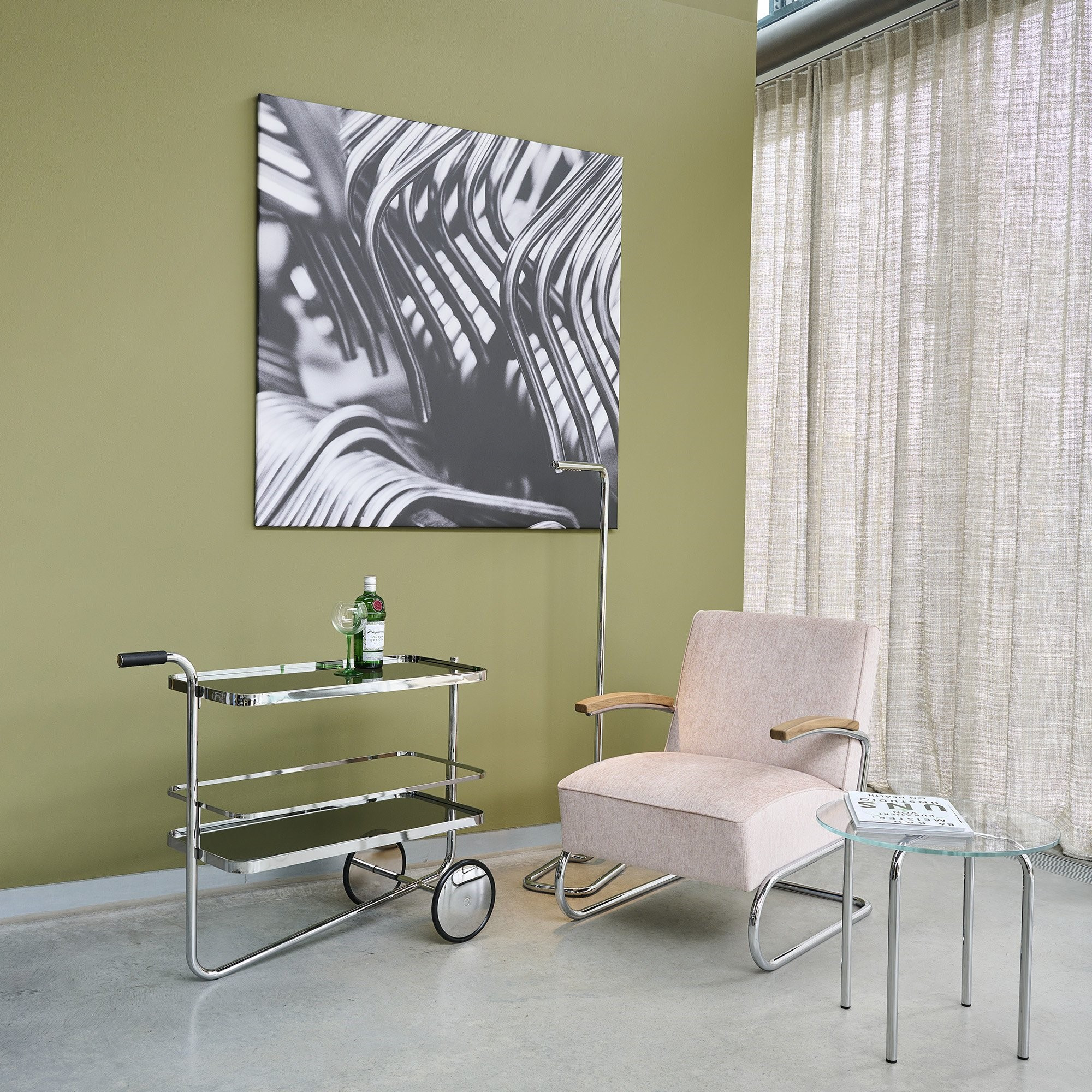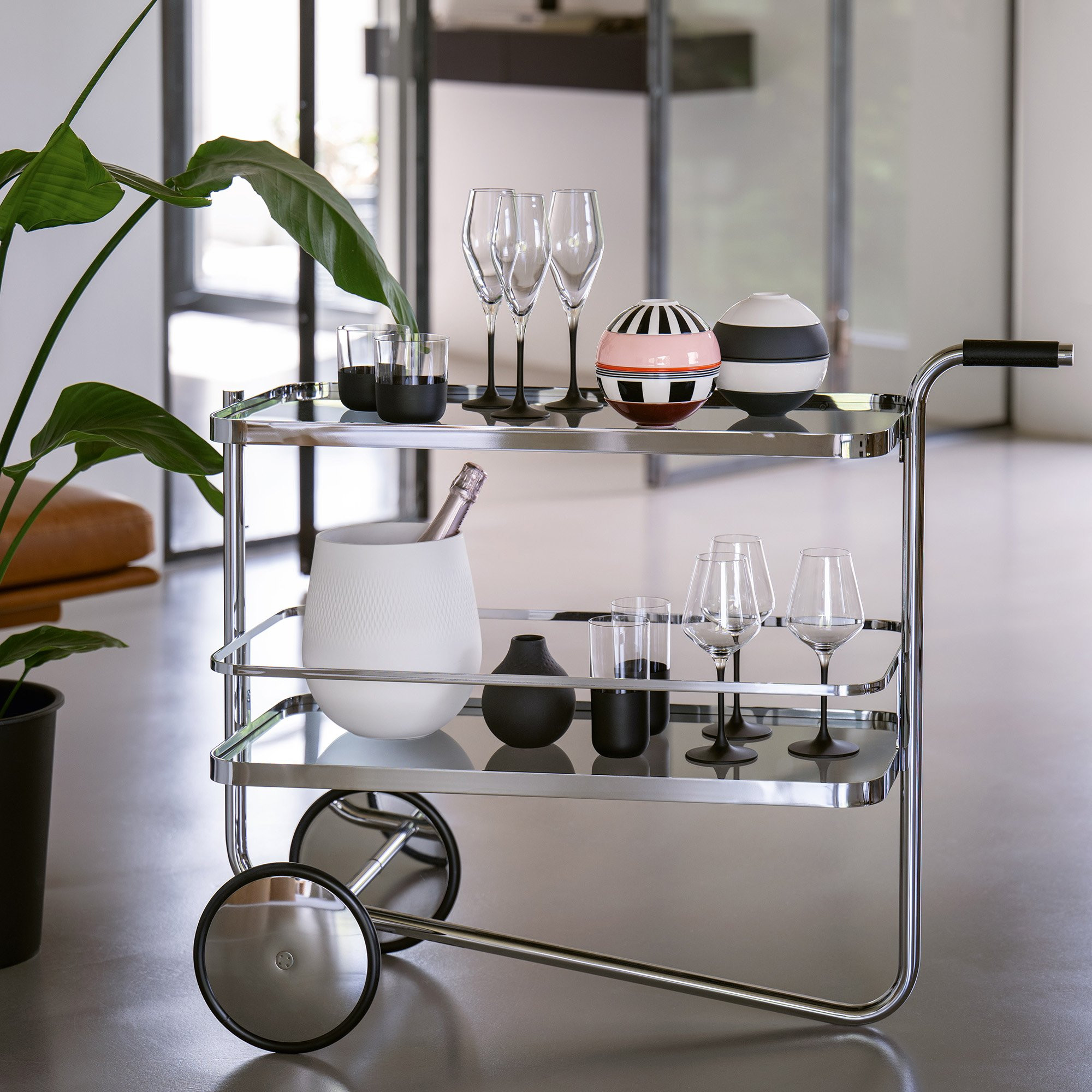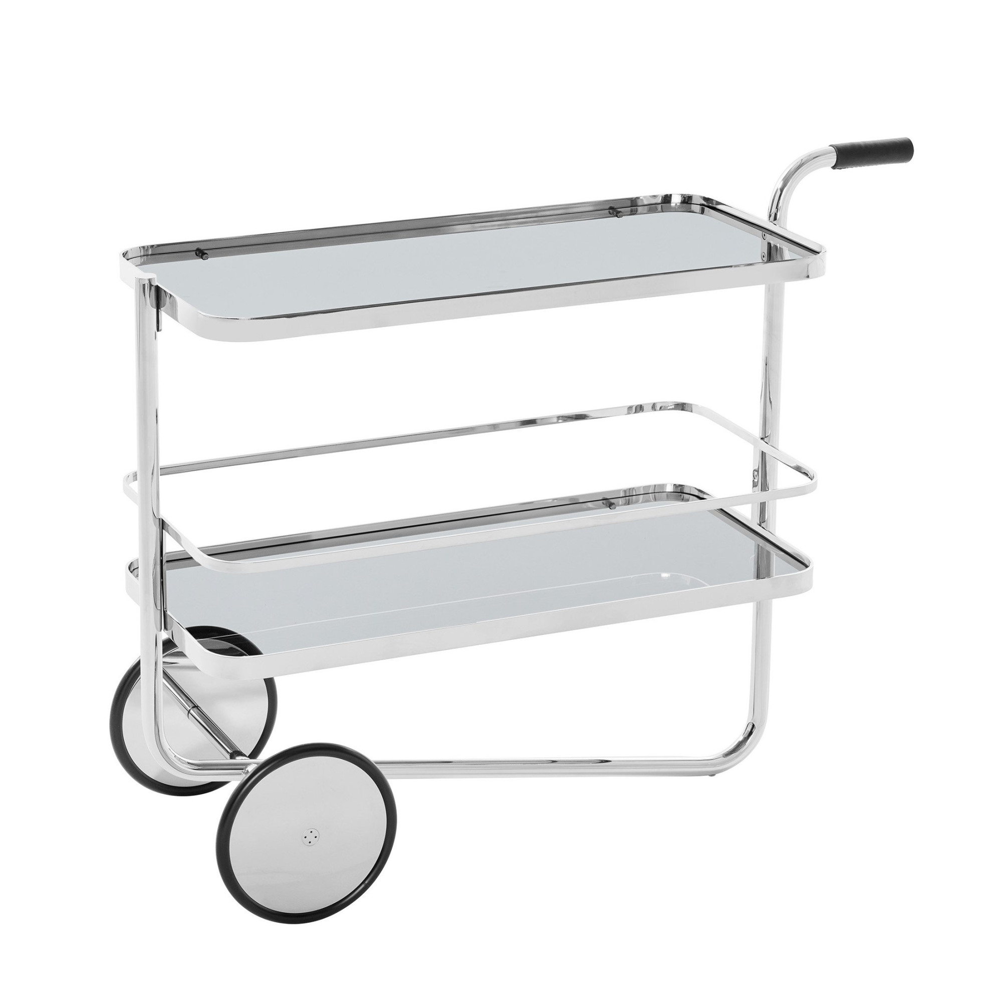 S 179 to luksusowy wózek barowy, zaprojektowany pierwotnie przez Ludwiga Miesa van der Rohe w latach 30., który dziś powraca w odświeżonej, jeszcze bardziej funkcjonalnej formie. To połączenie ponadczasowego designu z nowoczesną wygodą użytkowania. Konstrukcja oparta na jednej, giętej ramie z chromowanej stali rurowej nadaje mu lekkości wizualnej i jednocześnie zapewnia stabilność.
