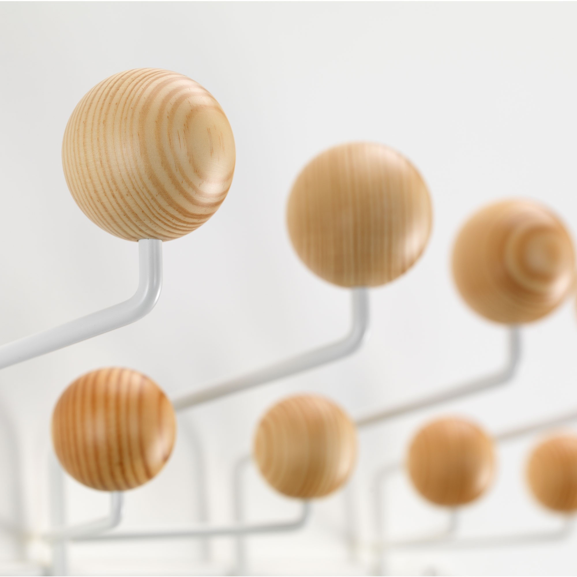 Hang It All zaprojektowany w 1953 roku przez Charlesa i Ray Eames to designerski wieszak ścienny, który łączy funkcjonalność z radością codziennego użytkowania. Kolorowe, drewniane kule rozmieszczone na stalowym stelażu zachęcają, by dosłownie „powiesić wszystko” – od płaszczy i toreb, po dziecięce ubrania i dodatki.