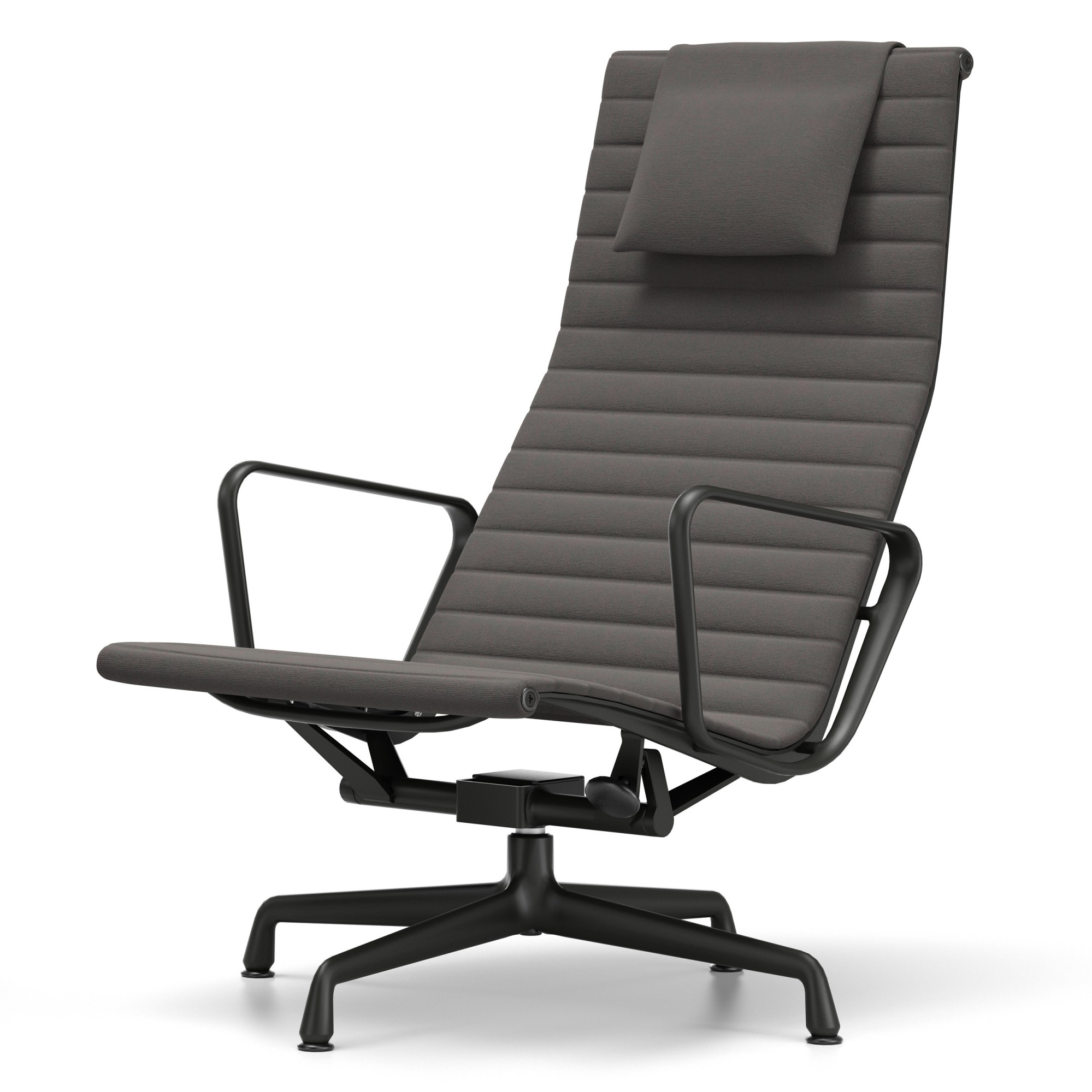 EA 124 z kolekcji Aluminium Group marki Vitra to esencja komfortu i ponadczasowej elegancji. Smukła sylwetka, wysokie oparcie i zintegrowany zagłówek perfekcyjnie dopasowują się do ciała, zapewniając wyjątkowy komfort nawet bez dodatkowych poduszek. Konstrukcja z napinanego materiału między profilami z odlewanego aluminium nadaje fotelowi lekkość, elastyczność i nowoczesny charakter. Wersja tapicerowana tkaniną Hopsak dark gray 05 z bazą w kolorze czarnym to idealny wybór do domowego biura, salonu czy wnętrz publicznych – każdy, kto szuka nowoczesnego fotela, doceni połączenie luksusu i funkcjonalności.