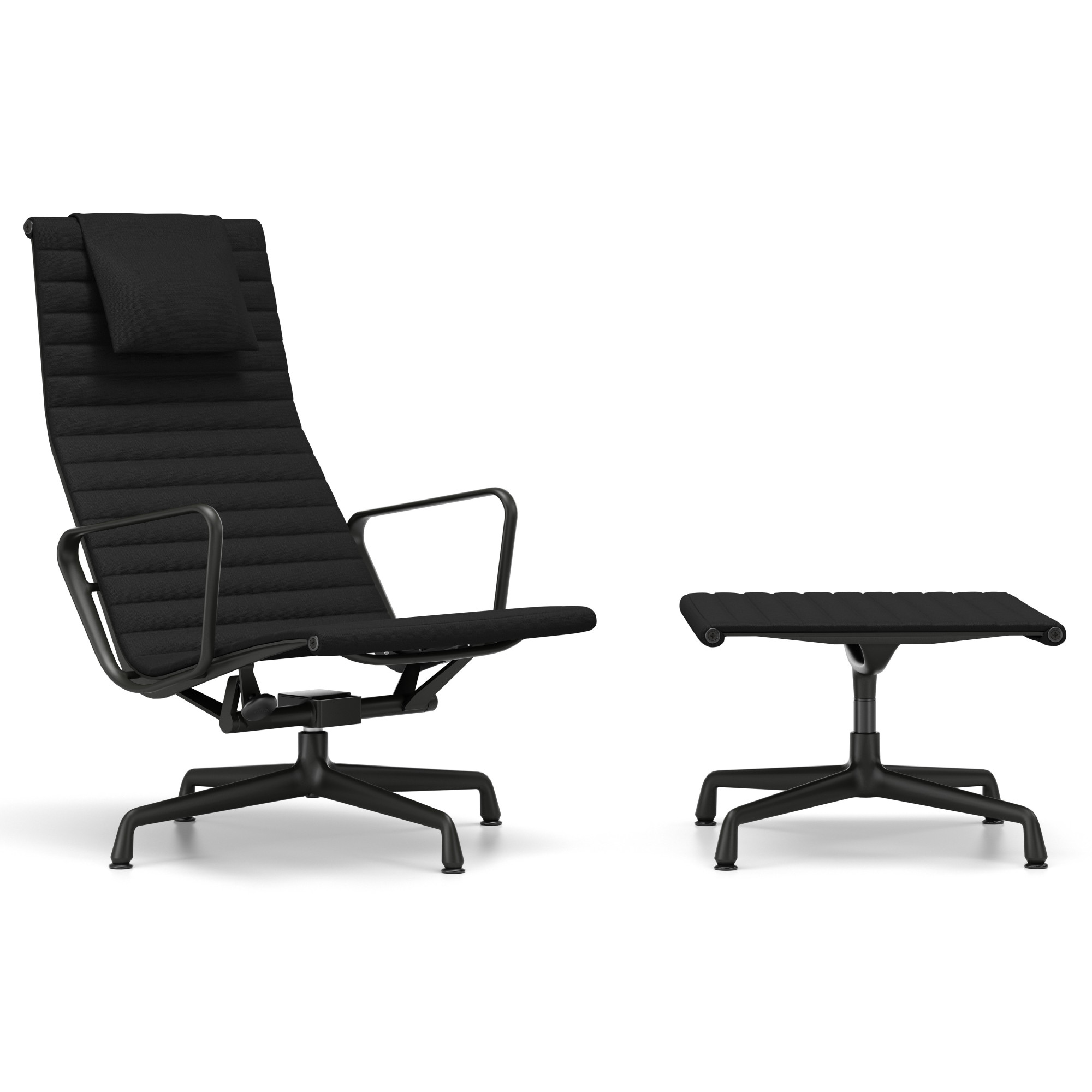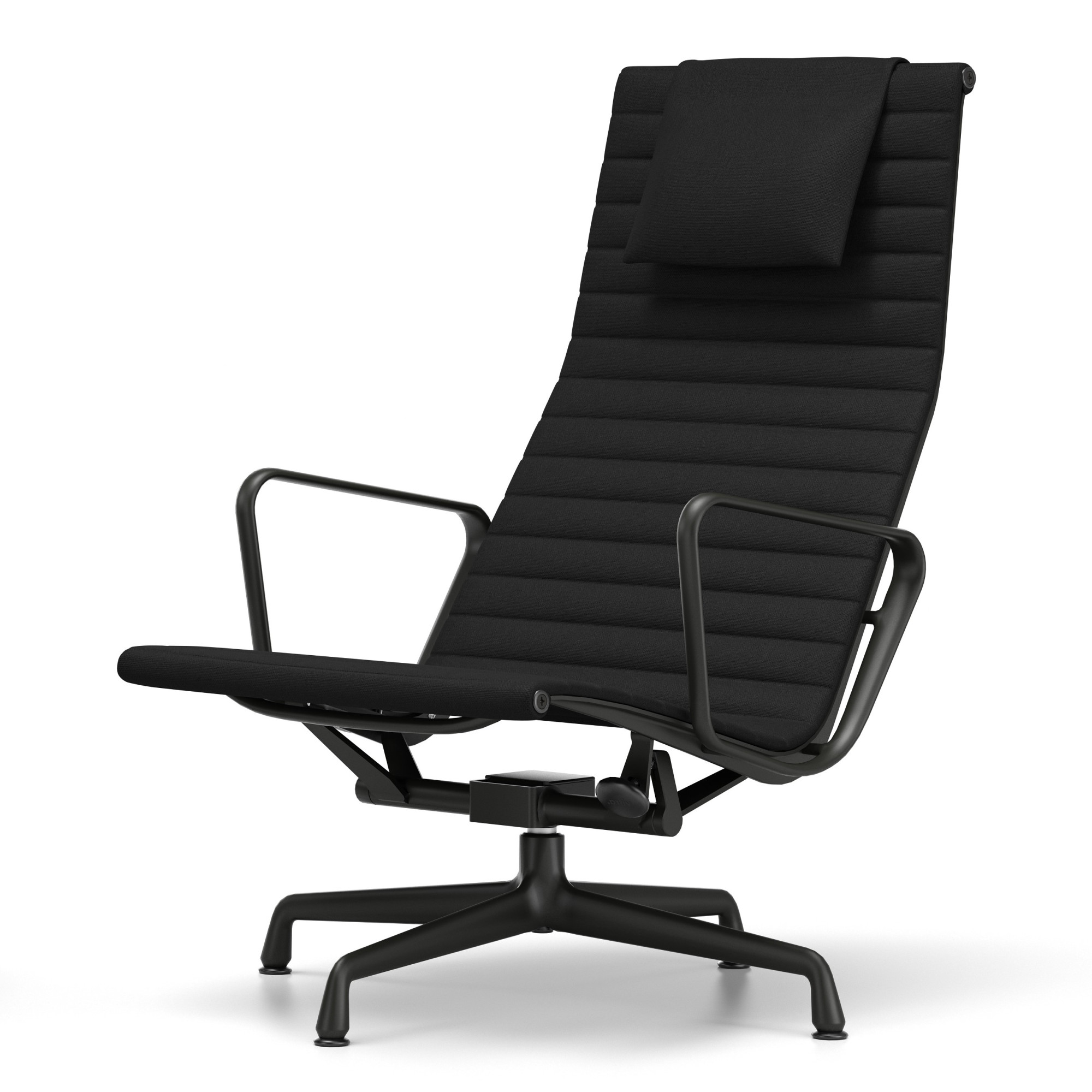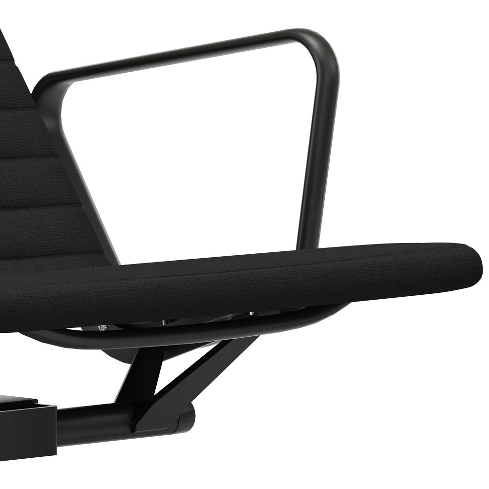 EA 124 z kolekcji Aluminium Group marki Vitra to esencja komfortu i ponadczasowej elegancji. Smukła sylwetka, wysokie oparcie i zintegrowany zagłówek perfekcyjnie dopasowują się do ciała, zapewniając wyjątkowy komfort nawet bez dodatkowych poduszek. Konstrukcja z napinanego materiału między profilami z odlewanego aluminium nadaje fotelowi lekkość, elastyczność i nowoczesny charakter. Wersja tapicerowana tkaniną Hopsak Nero 66 z bazą w kolorze czarnym to idealny wybór do domowego biura, salonu czy wnętrz publicznych – każdy, kto szuka nowoczesnego fotela, doceni połączenie luksusu i funkcjonalności.