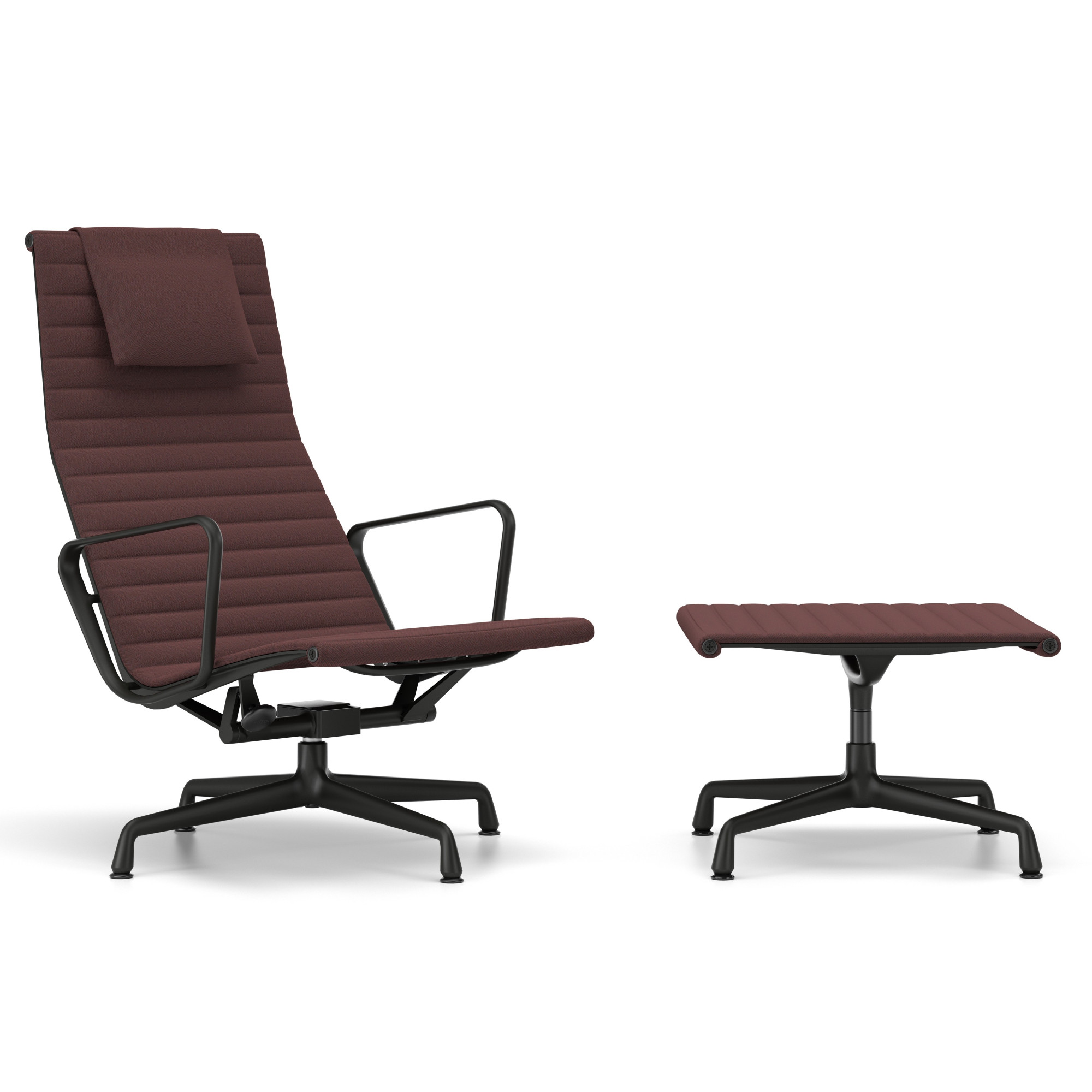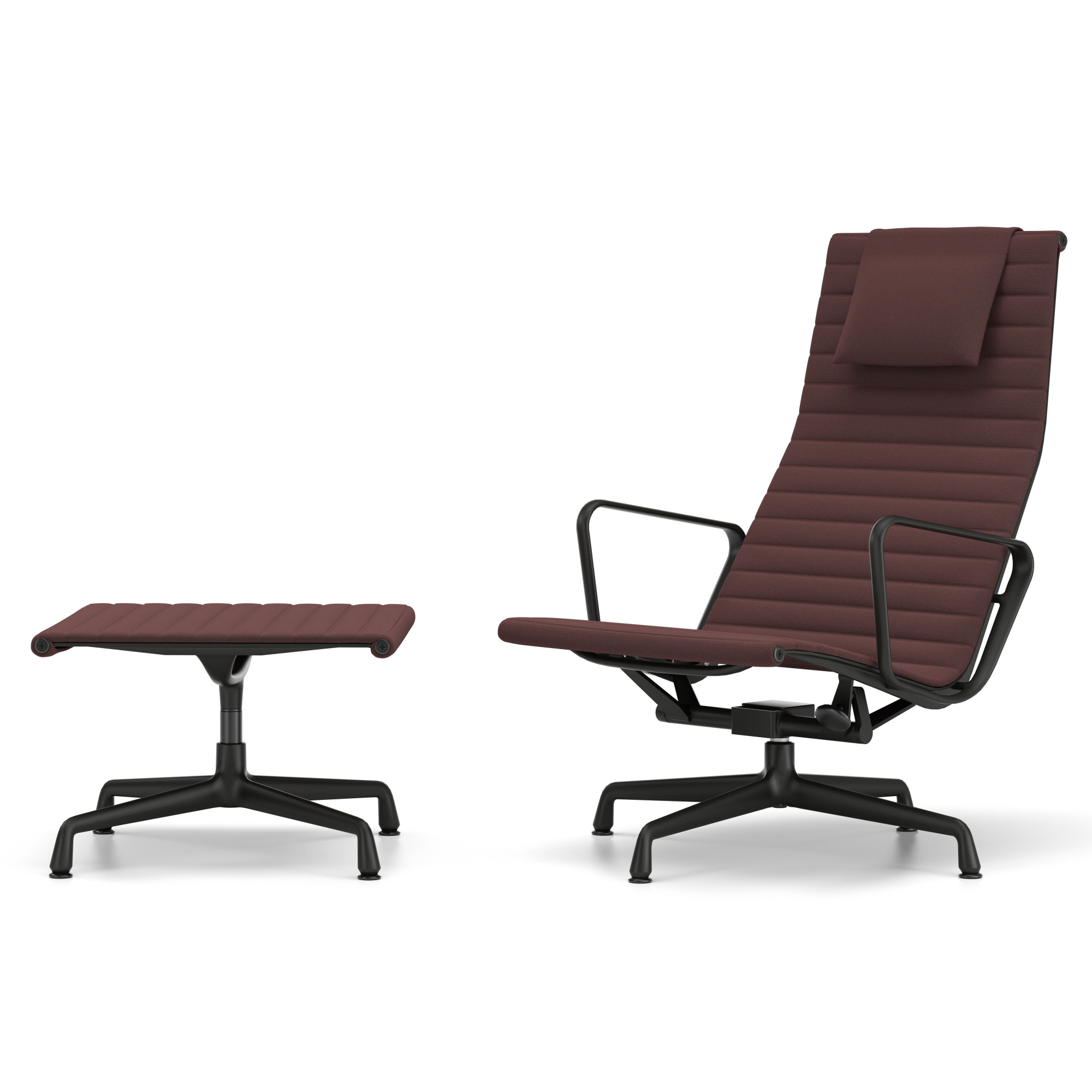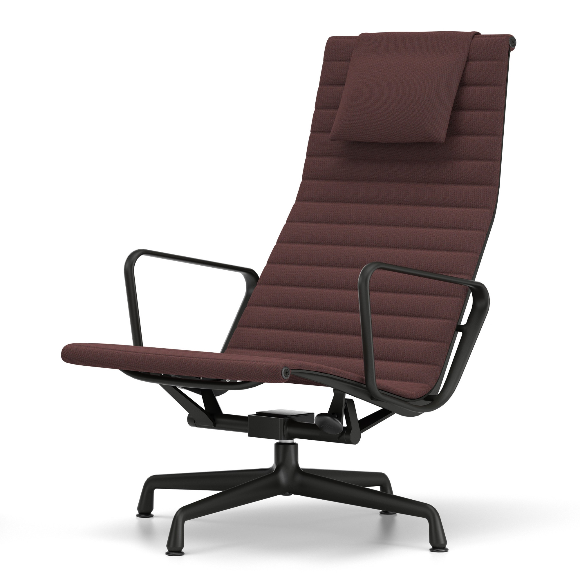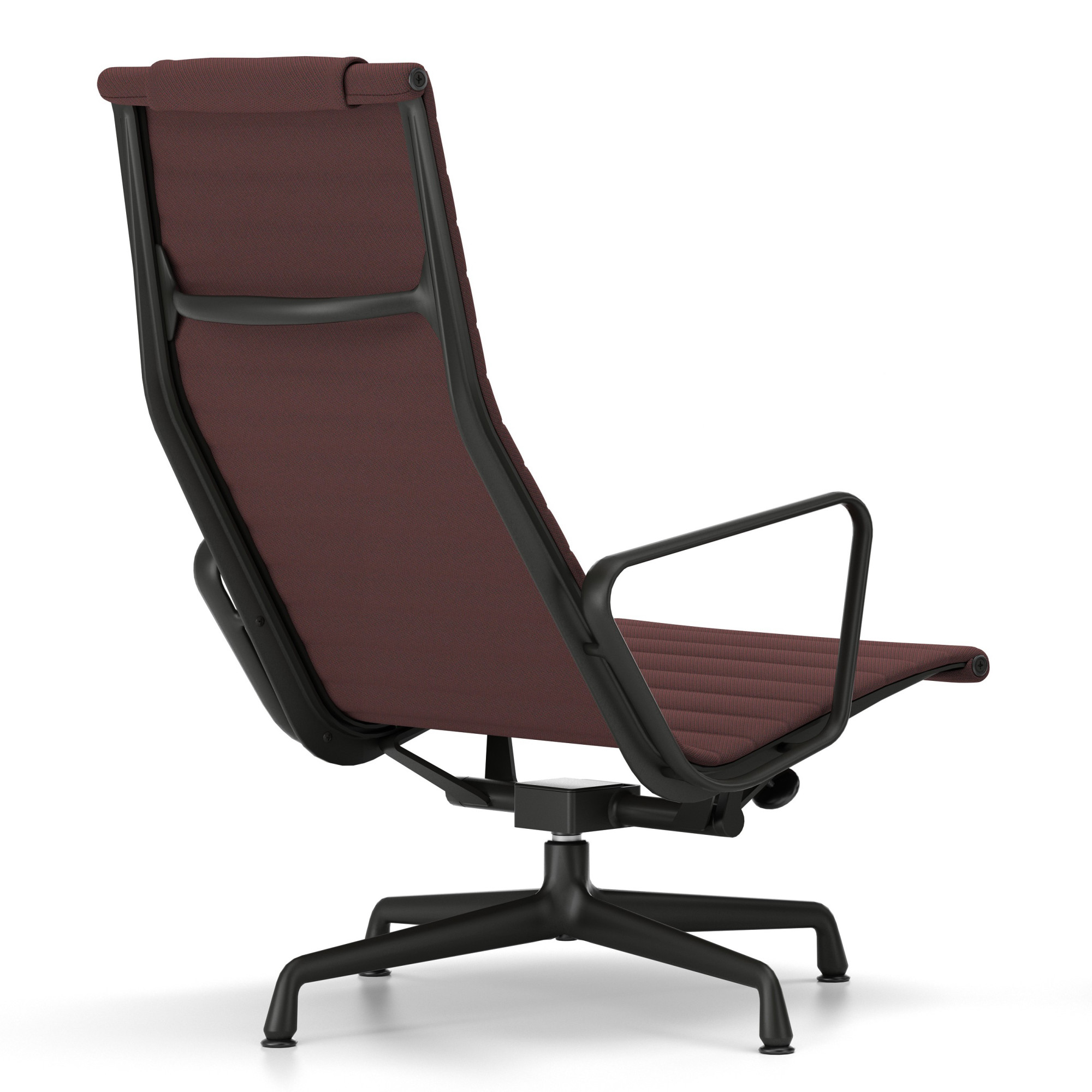 EA 124 z kolekcji Aluminium Group marki Vitra to esencja komfortu i ponadczasowej elegancji. Smukła sylwetka, wysokie oparcie i zintegrowany zagłówek perfekcyjnie dopasowują się do ciała, zapewniając wyjątkowy komfort nawet bez dodatkowych poduszek. Konstrukcja z napinanego materiału między profilami z odlewanego aluminium nadaje fotelowi lekkość, elastyczność i nowoczesny charakter. Wersja tapicerowana tkaniną Track 16 Dark Red-Nero z bazą w kolorze czarnym to idealny wybór do domowego biura, salonu czy wnętrz publicznych – każdy, kto szuka nowoczesnego fotela, doceni połączenie luksusu i funkcjonalności.