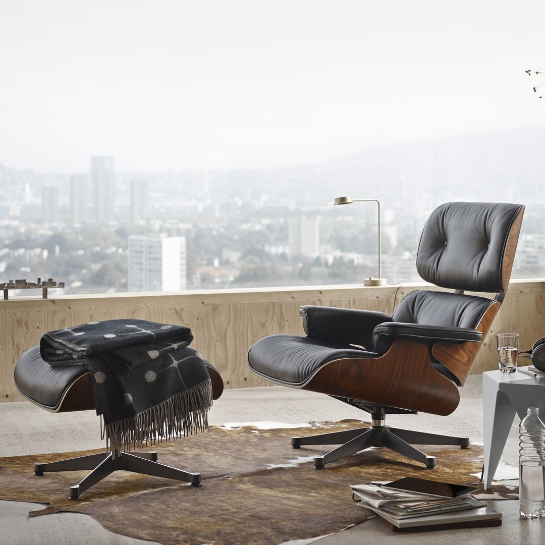 Fotel Eames Lounge Chair dostępny jest w dwóch wysokościach, z możliwością wyboru spośród czterech rodzajów ślizgaczy, szerokiej gamy tkanin i skór (zdjęcia aranżacyjne prezentują różne warianty wykończeń), a także trzech wersji podstawy i sześciu wykończeń skorupy. Szeroka gama konfiguracji pozwala dopasować fotel do wnętrza i uzupełnić go o podnóżek dla pełni komfortu.