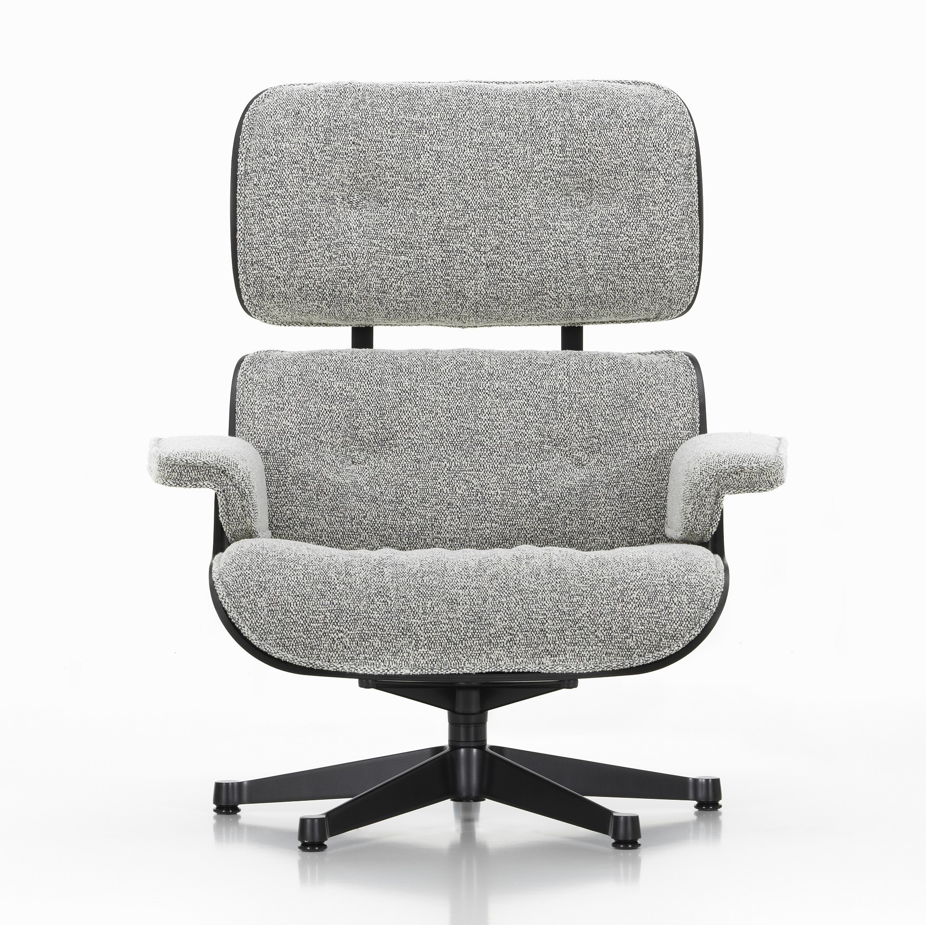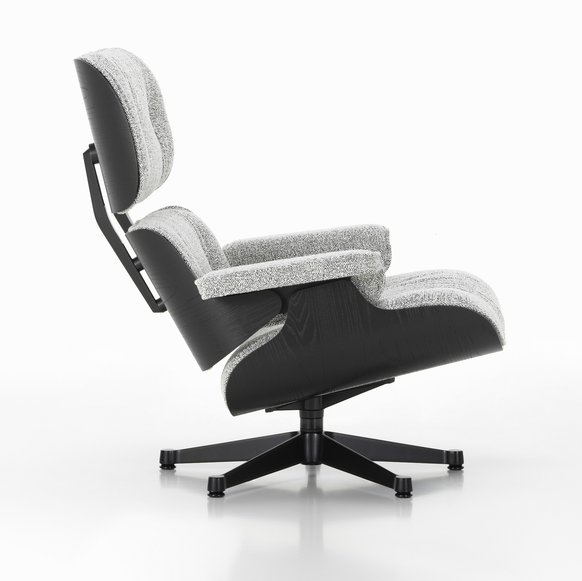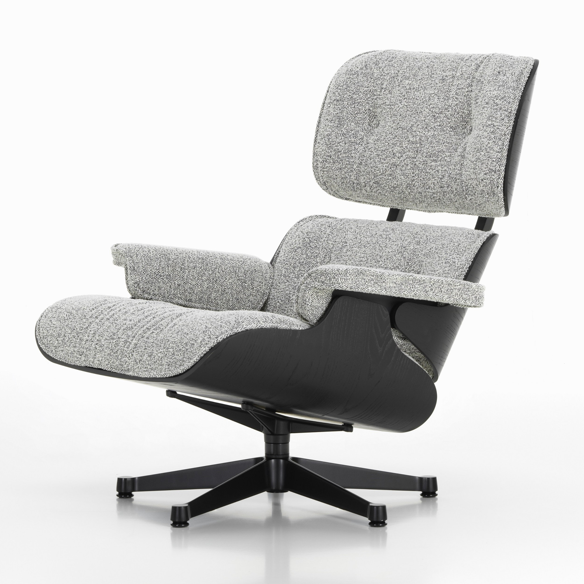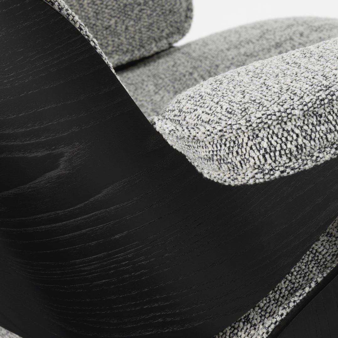 Fotel Eames Lounge Chair to bestseller, który łączy komfort, elegancję i ponadczasowy design. Tapicerowany tkaniną Nubia 10 Salt’n’Pepper, o subtelnym melanżu przędzy w odcieniach czerni, bieli i szarości, tworzy efekt „pieprz i sól”. Skorupa wykonana jest z europejskiego drewna Black Chestnut, wykończonego lakierem wodnym, a czarna podstawa w lakierze proszkowym nadaje fotelowi nowoczesny charakter.