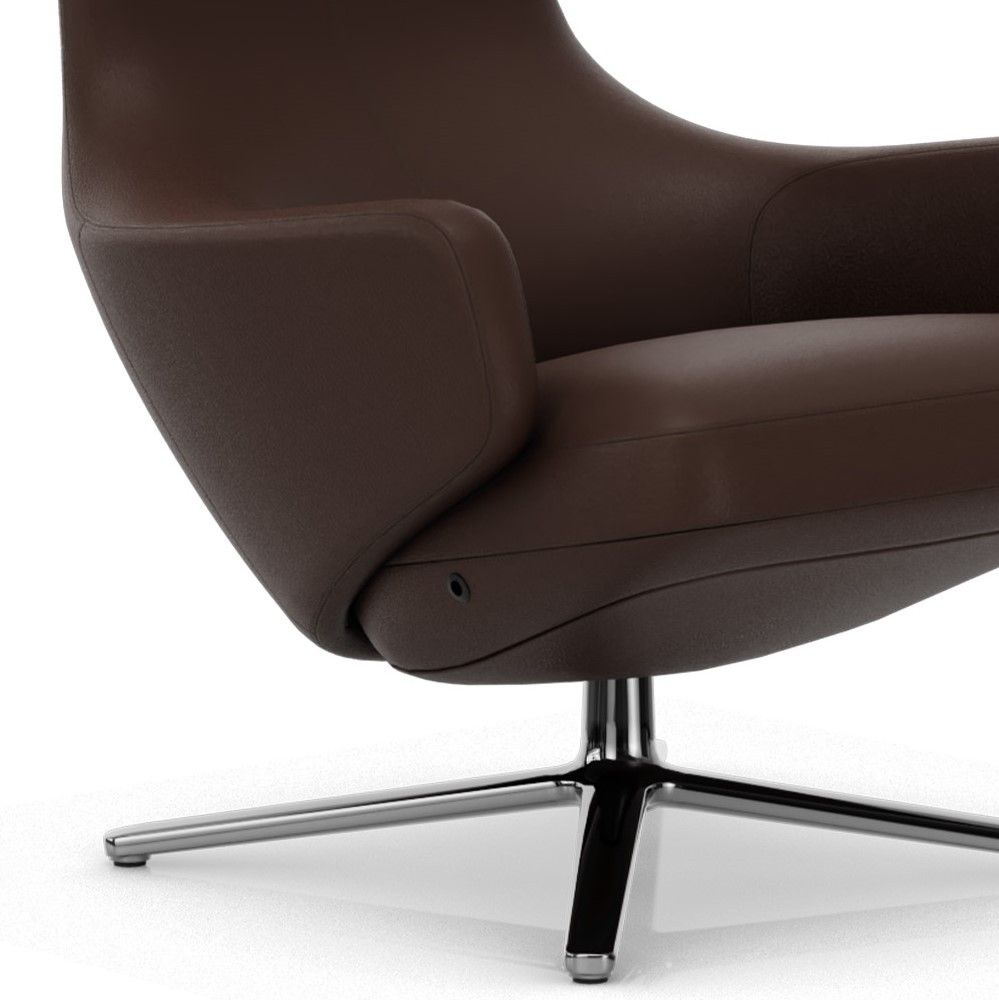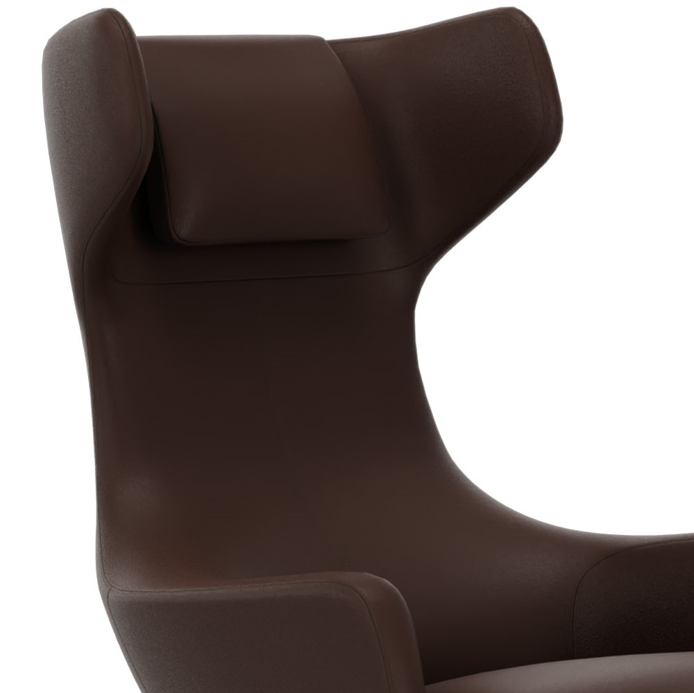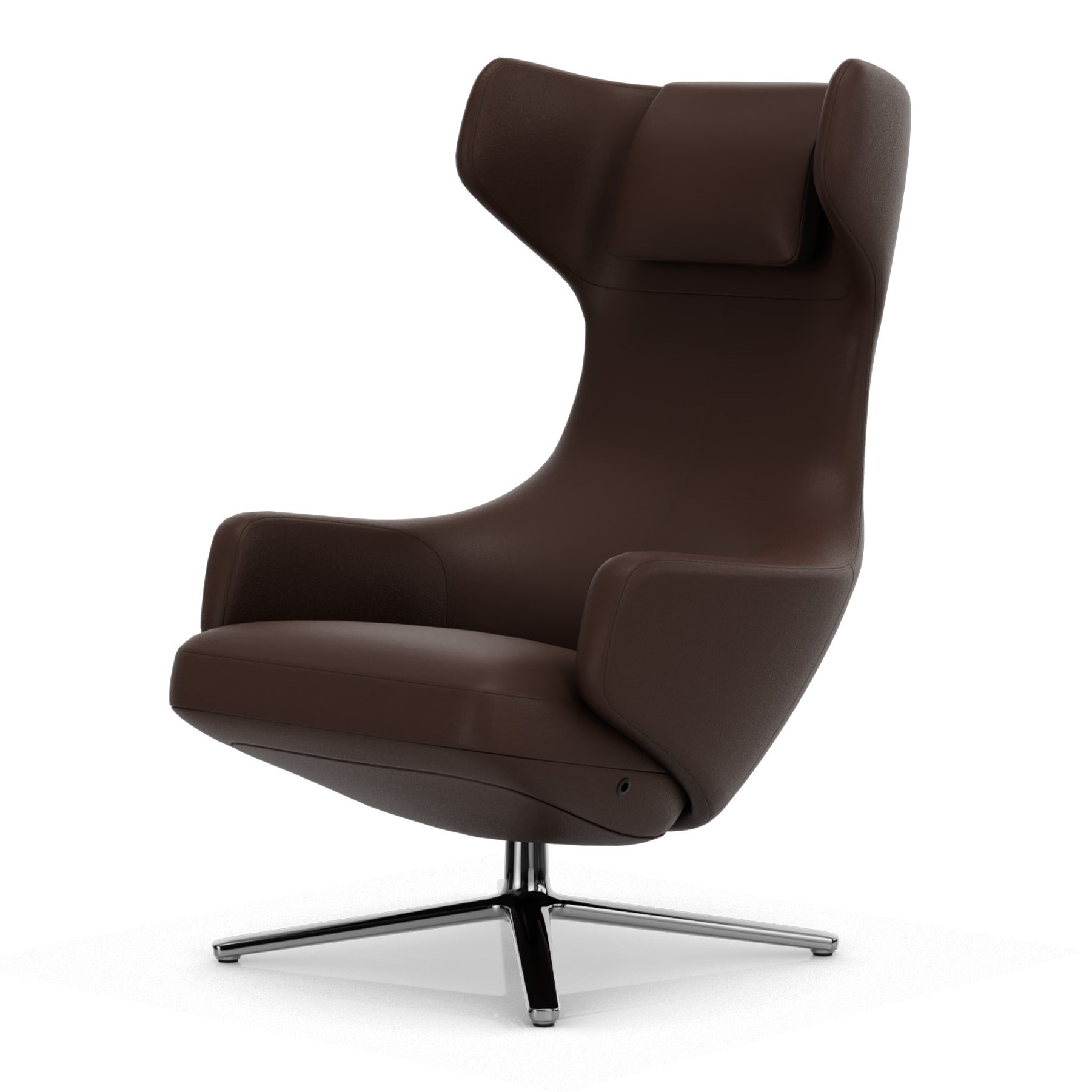 Grand Repos – skórzany fotel Vitra, który łączy elegancję z ergonomicznym komfortem. Tapicerowany naturalną skórą Premium 69 Marron, osadzony na czteroramiennej, aluminiowej podstawie, prezentuje się szlachetnie i ponadczasowo.