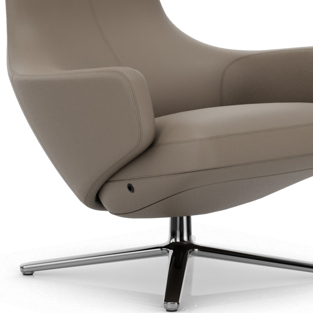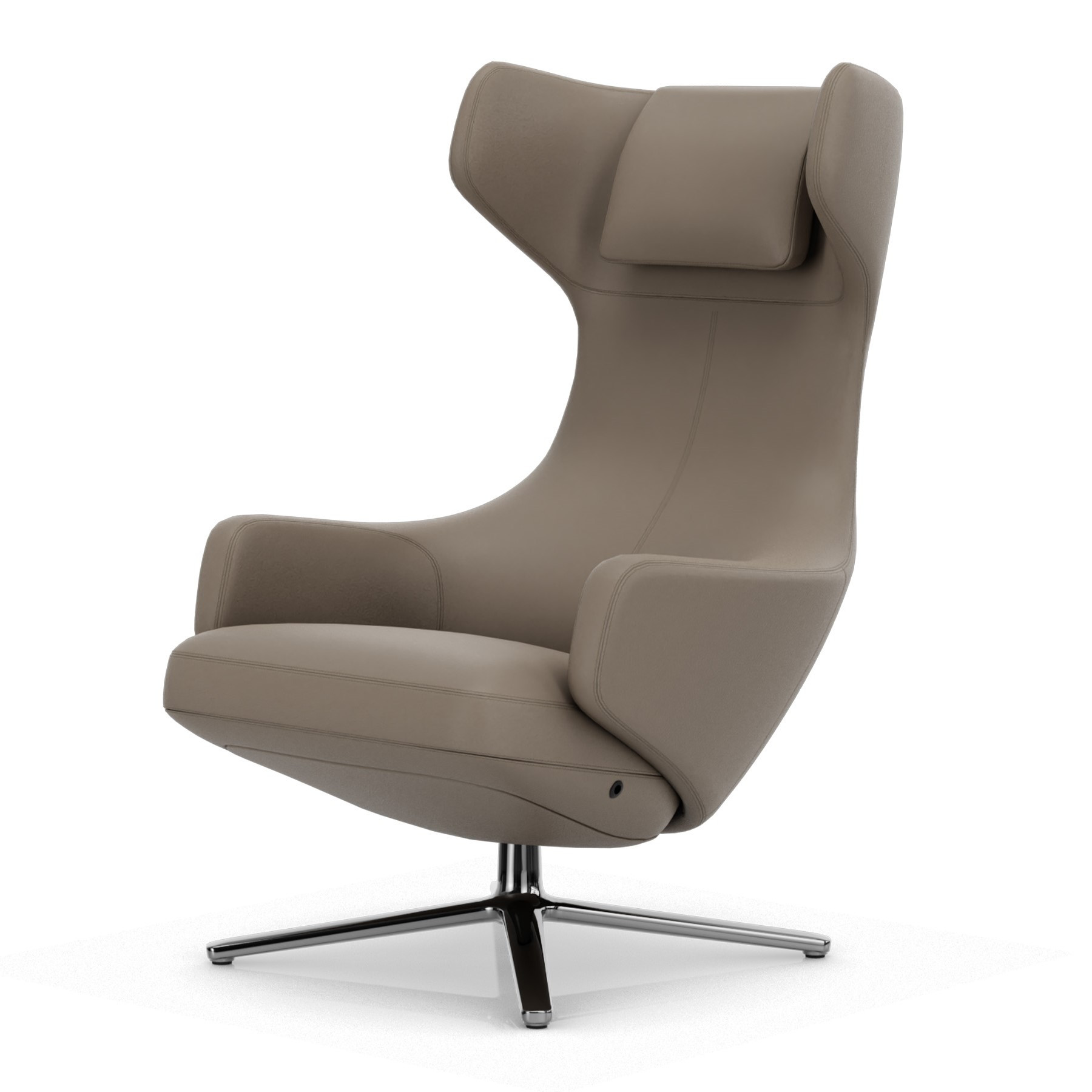 Grand Repos – skórzany fotel Vitra, który łączy elegancję z ergonomicznym komfortem. Tapicerowany naturalną skórą Premium 66 Nero, osadzony na czteroramiennej, aluminiowej podstawie, prezentuje się szlachetnie i ponadczasowo.