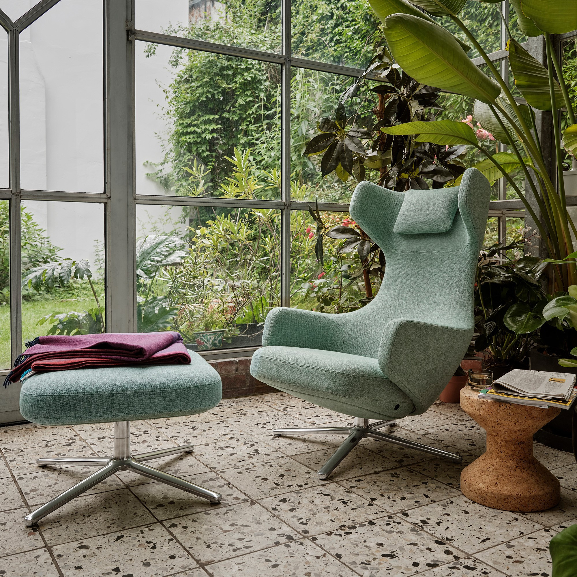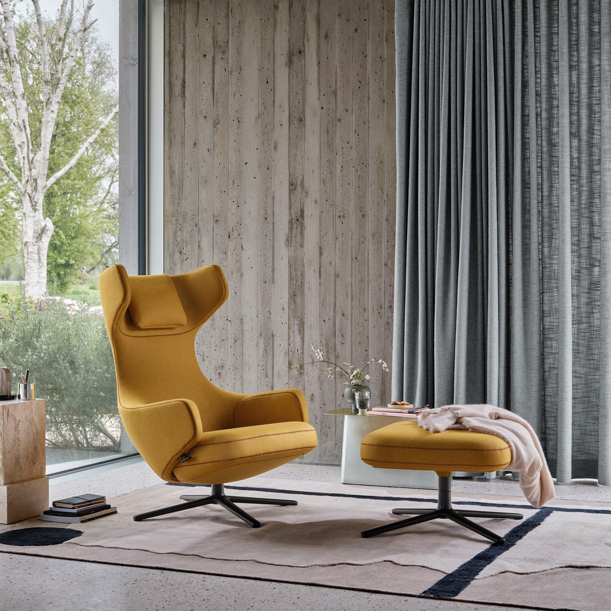 Grand Repos – skórzany fotel Vitra, który łączy elegancję z ergonomicznym komfortem. Tapicerowany naturalną skórą Premium 61 Umbra Grey, osadzony na czteroramiennej, aluminiowej podstawie, prezentuje się szlachetnie i ponadczasowo.