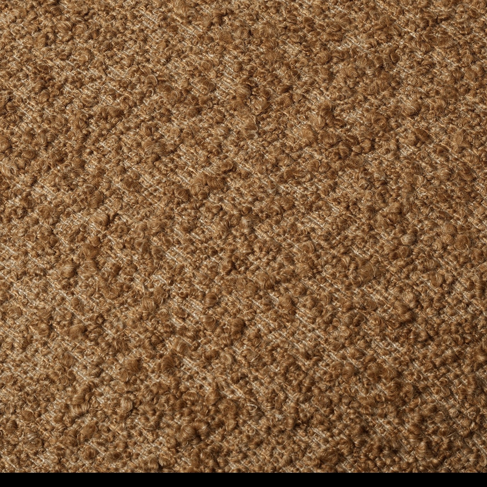 Model wykonany jest ręcznie w Europie i tapicerowany wysokiej jakości tkaniną bouclé w odcieniu karmelowego brązu (Tan) – ciepłym, naturalnym kolorze, który wprowadza do wnętrza przytulność i spójność aranżacji. Konstrukcja oparta na drewnie z certyfikatem FSC™ oraz wypełnienie z pianki zapewniają trwałość i wygodę na co dzień.