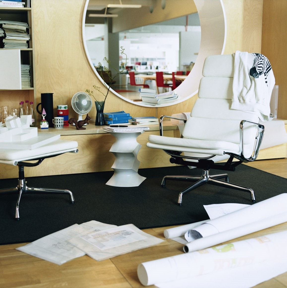 Soft Pad Chair EA 222 Lounge Vitra to ikona komfortu i elegancji. Ten fotel wypoczynkowy o wysokim oparciu i niskim siedzisku łączy ponadczasowy design z funkcjonalnością – jego mechanizm odchylenia dopasowuje się do ciężaru użytkownika, zapewniając idealne wsparcie i relaks. Pięć miękkich poduszek z pianki poliuretanowej, tapicerowanych w skórze lub tkaninie, kontrastuje z lekką, aluminiową konstrukcją o polerowanym, chromowanym lub lakierowanym wykończeniu.