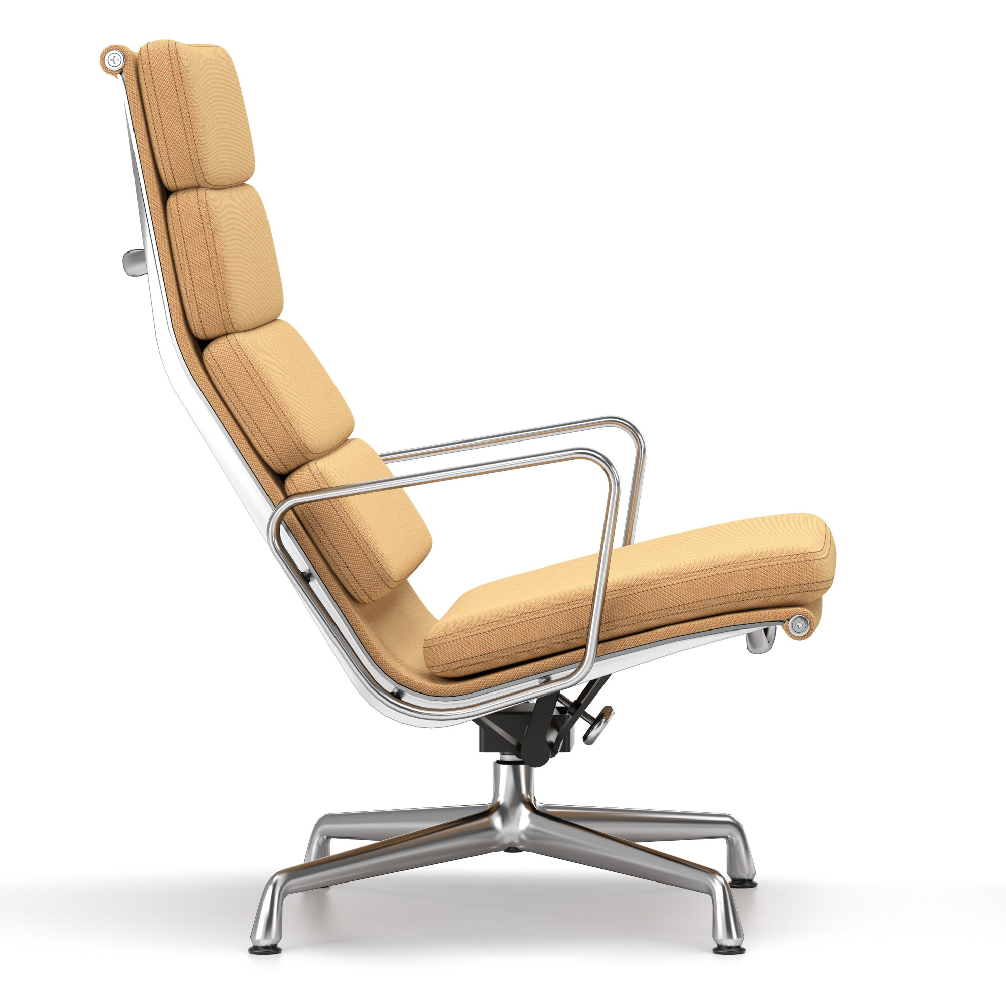 Soft Pad Chair EA 222 Lounge Vitra to ikona komfortu i elegancji. Ten fotel wypoczynkowy o wysokim oparciu i niskim siedzisku łączy ponadczasowy design z funkcjonalnością – jego mechanizm odchylenia dopasowuje się do ciężaru użytkownika, zapewniając idealne wsparcie i relaks. Pięć miękkich poduszek z pianki poliuretanowej, tapicerowanych w skórze lub tkaninie, kontrastuje z lekką, aluminiową konstrukcją o polerowanym, chromowanym lub lakierowanym wykończeniu.