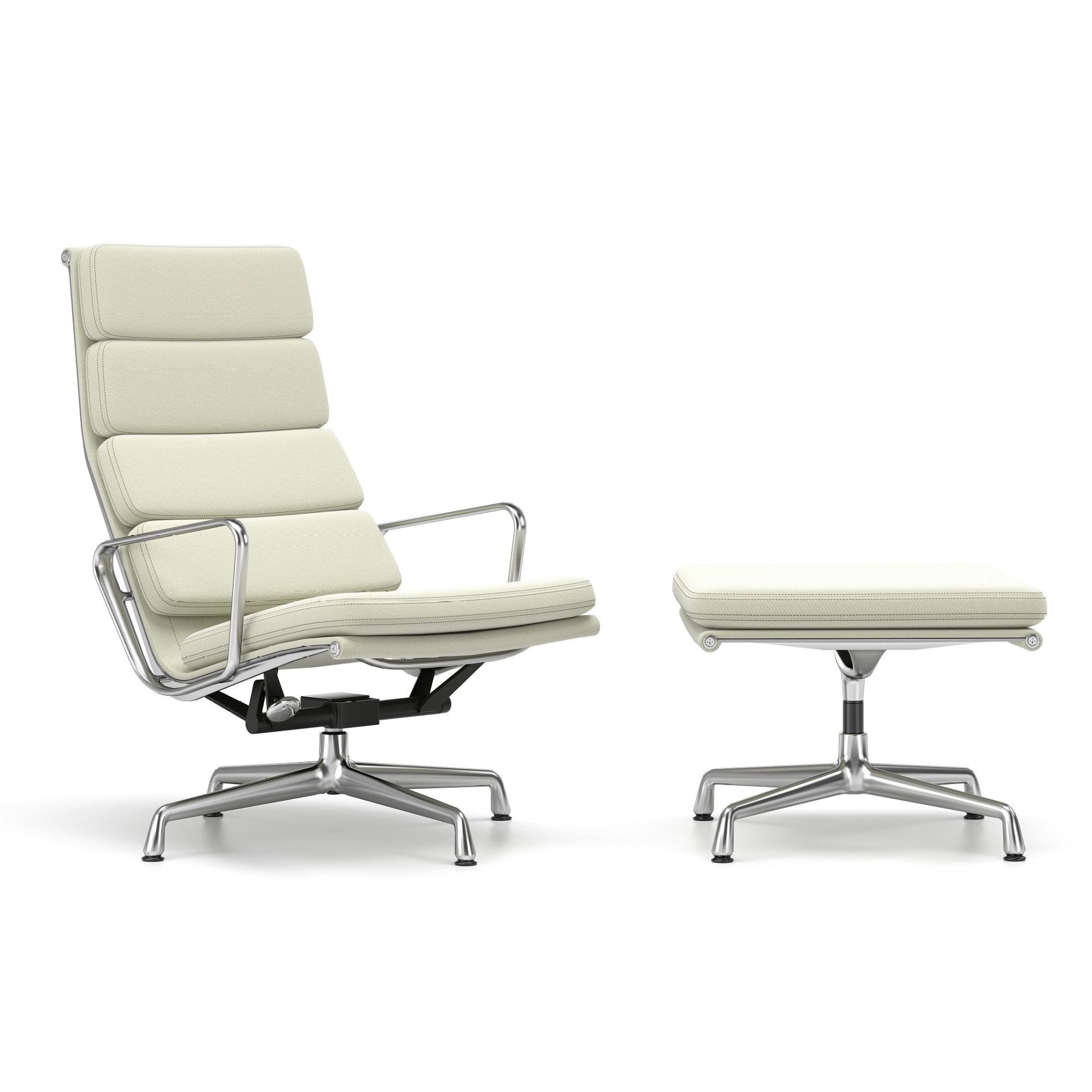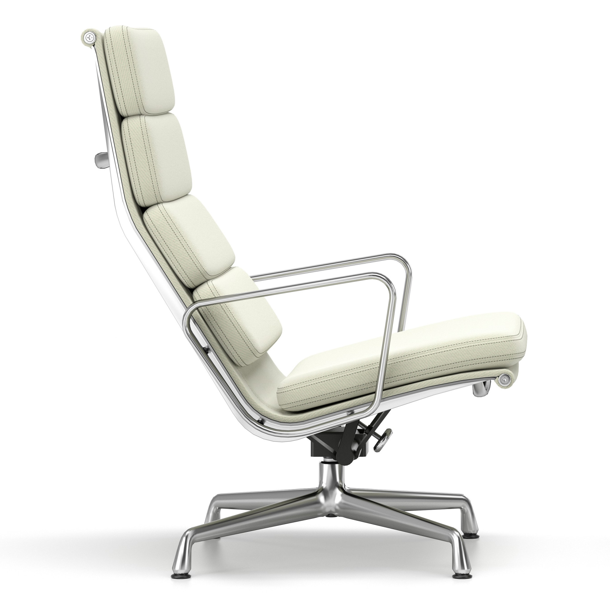 Soft Pad Chair EA 222 Lounge Vitra to ikona komfortu i elegancji. Ten fotel wypoczynkowy o wysokim oparciu i niskim siedzisku łączy ponadczasowy design z funkcjonalnością – jego mechanizm odchylenia dopasowuje się do ciężaru użytkownika, zapewniając idealne wsparcie i relaks. Pięć miękkich poduszek z pianki poliuretanowej, tapicerowanych w skórze lub tkaninie, kontrastuje z lekką, aluminiową konstrukcją o polerowanym, chromowanym lub lakierowanym wykończeniu.