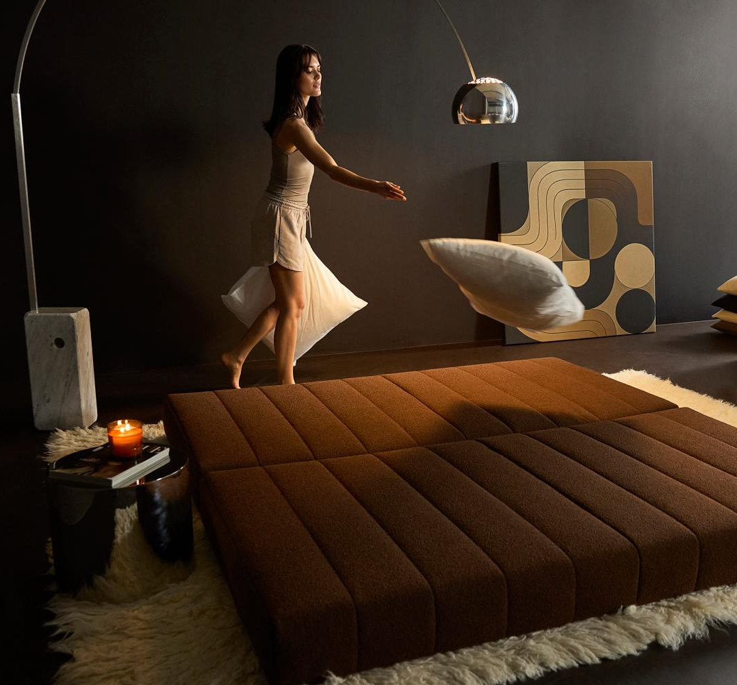 Ten rozkładany fotel jest częścią modułowej kolekcji CozyPad, umożliwiającej tworzenie dowolnych konfiguracji - od pojedynczego siedziska po pełnowymiarową sofę z funkcją spania.