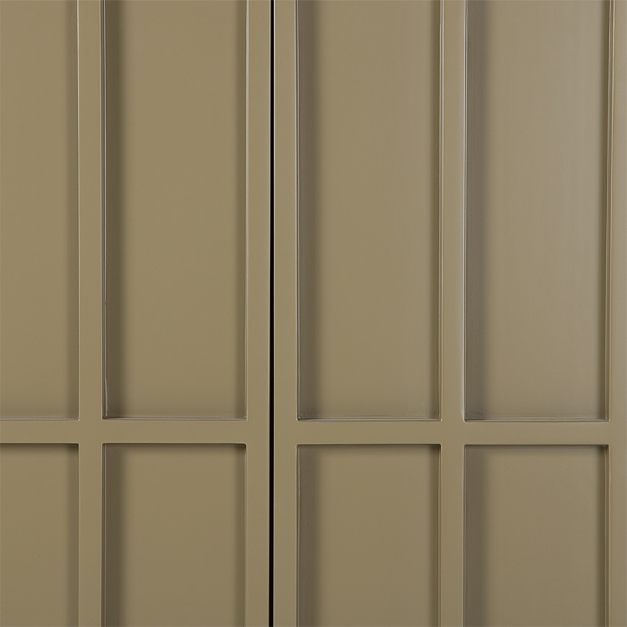 Szafka HKLiving Cupboard wyróżnia się wypukłym, geometrycznym wzorem frontów, który nadaje wnętrzu nowoczesny i designerski charakter. Oliwkowa zieleń wprowadza do przestrzeni spokój, naturalną harmonię i subtelną głębię, ułatwiając organizację w salonie, kuchni czy przedpokoju. Wykonana z MDF i stabilnych metalowych nóg, jest trwała, lekka i spójnie wykończona - wnętrze, półki i nogi utrzymano w tym samym kolorze co fronty. Buforowe zawiasy i praktyczne półki zapewniają wygodę codziennego użytkowania.