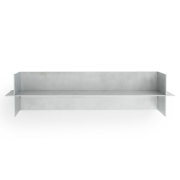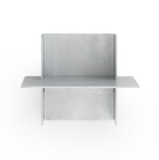Minimalistyczna półka ścienna wykonana ze szczotkowanego aluminium. Projekt autorstwa Simon Legald opiera się na dwóch precyzyjnie giętych płytach, które zazębiają się ze sobą, tworząc stabilną konstrukcję bez dodatkowych wzmocnień, dzięki temu forma jest czysta, architektoniczna i spójna wizualnie.