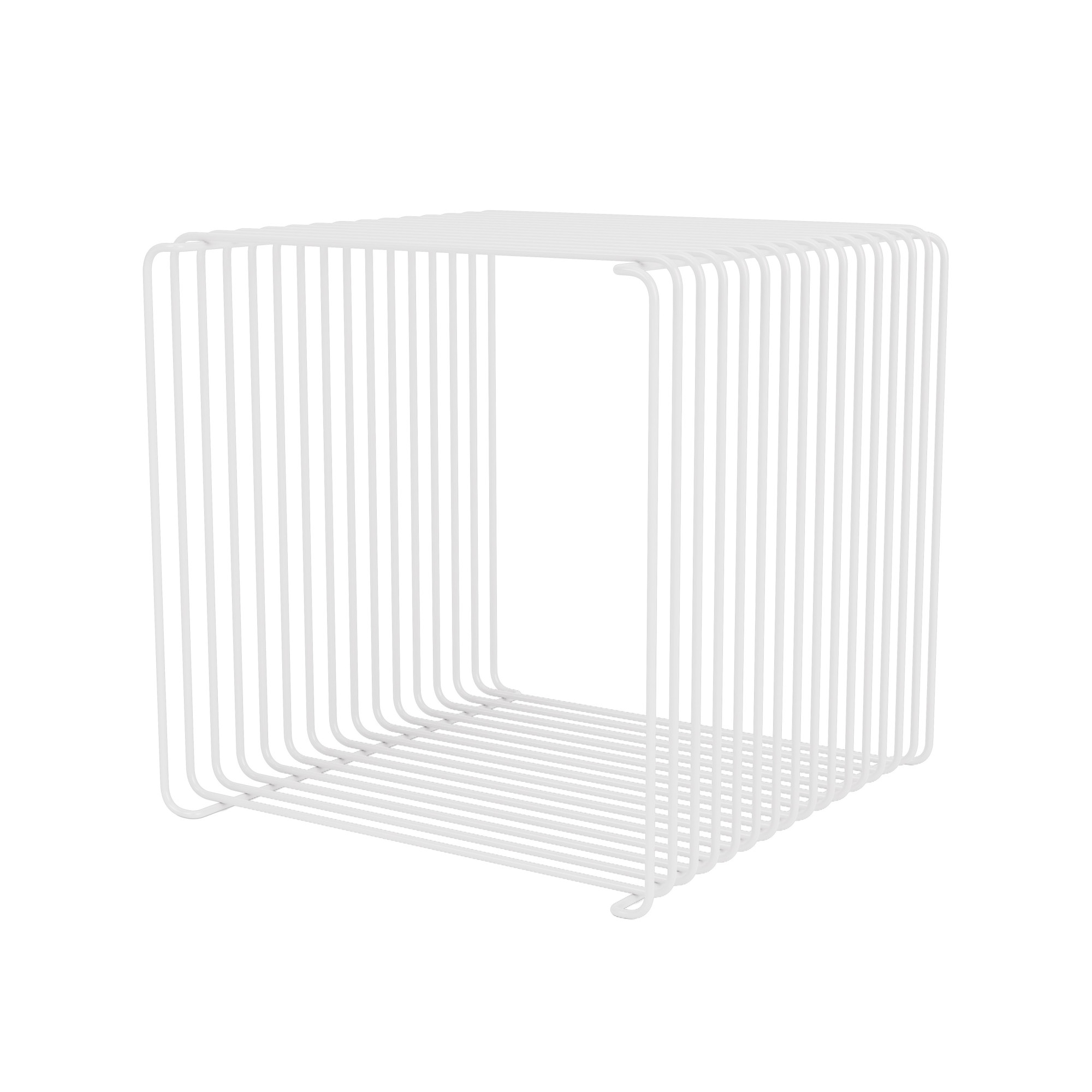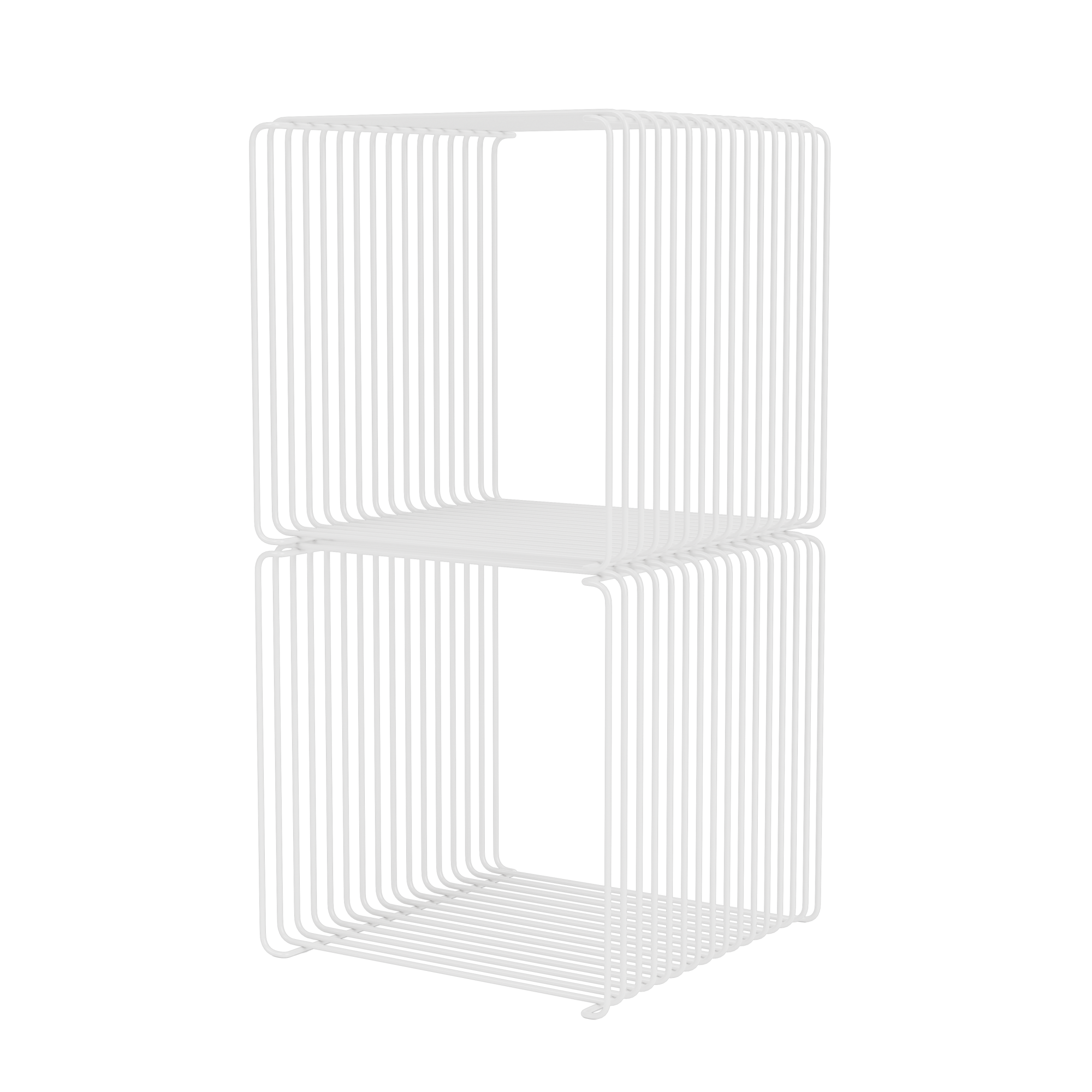 Prezentowany układ 2 modułów Panton Wire Single w rozmiarze 34,8 × 34,8 × 34,8 cm każdy to kompaktowa, pionowa kompozycja systemu, idealna jako np; półka na książki czy dokumenty czy minimalistyczna ekspozycja w sklepie. Ażurowa, druciana konstrukcja nadaje bryle architektoniczny charakter i sprawia, że nawet rozbudowana zabudowa pozostaje lekka optycznie.