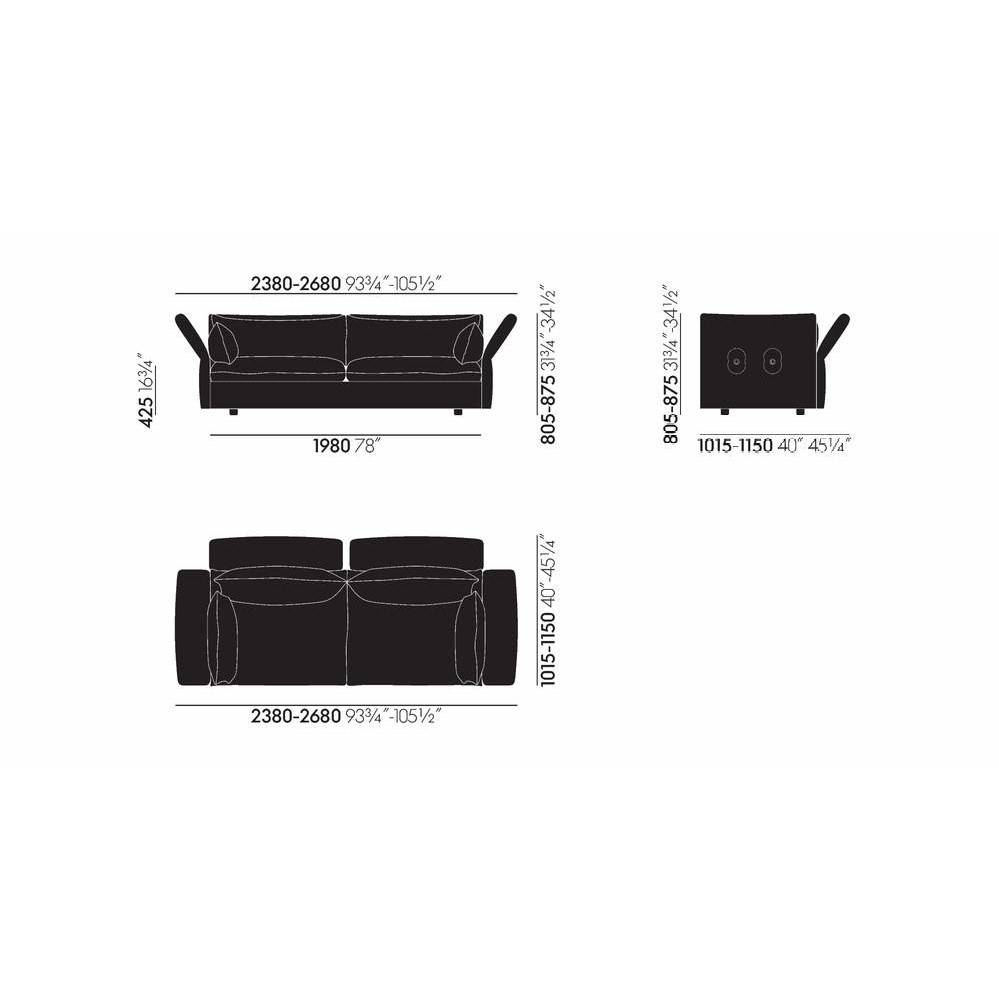 Przestronna, trzyosobowa forma zachęca, by wygodnie się rozciągnąć, oprzeć głowę o regulowane podłokietniki i odpocząć po długim dniu. Subtelna, minimalistyczna linia sprawia, że ta nowoczesna sofa doskonale wpisuje się w współczesne wnętrza salonów, apartamentów i przestrzeni premium.