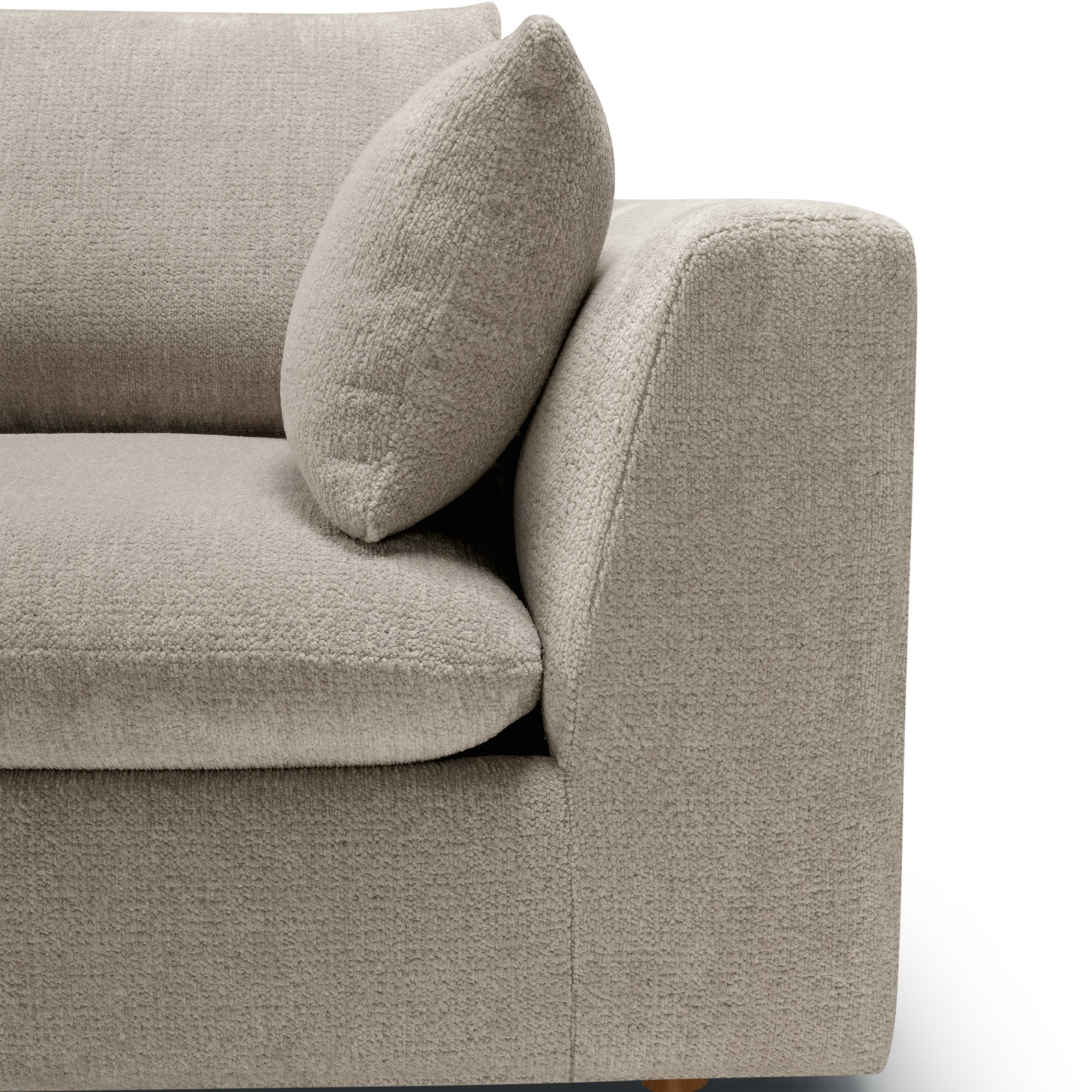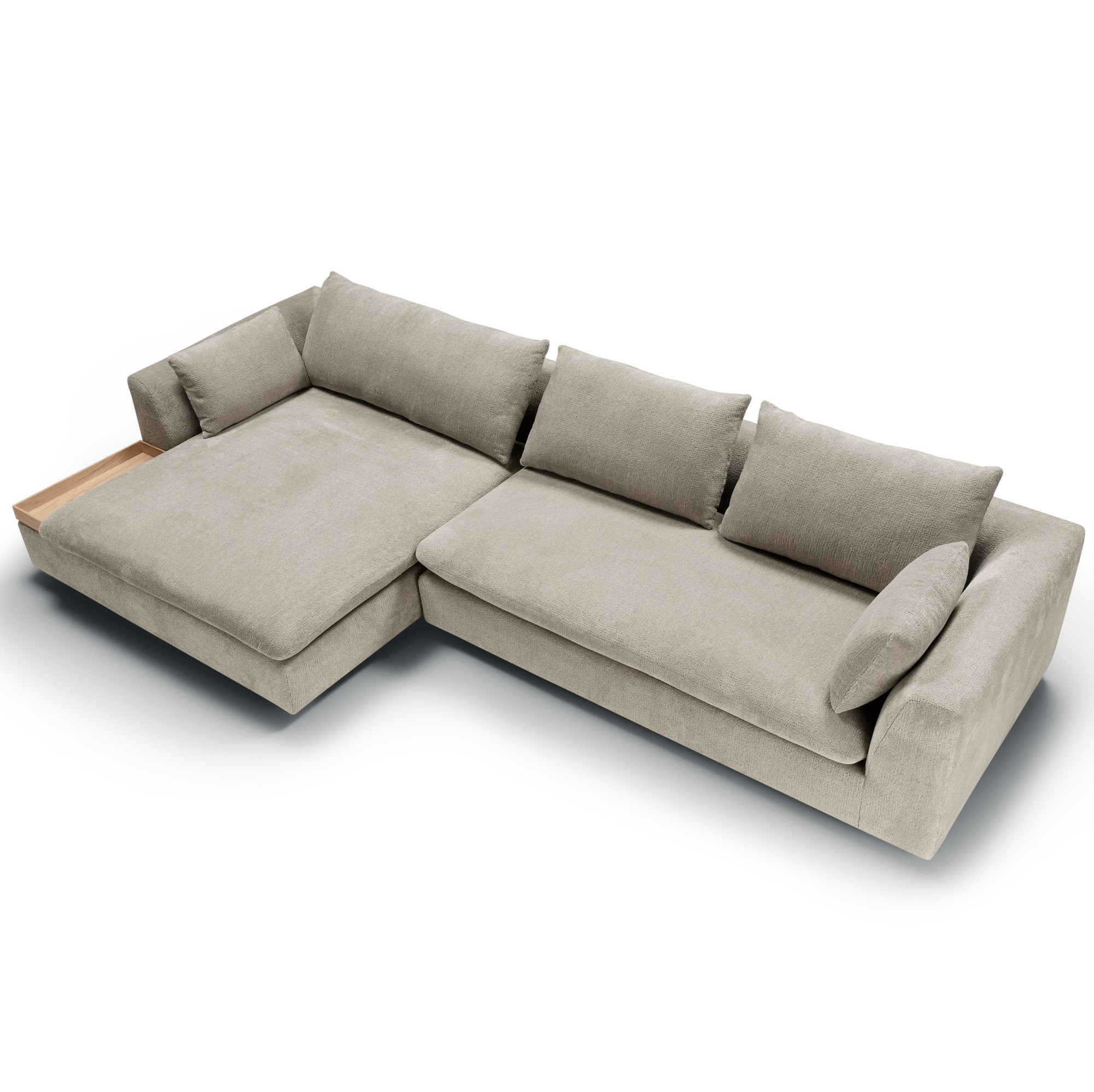 Sofa Milou dostępna jest w wielu konfiguracjach – jako klasyczna sofa 3-osobowa, sofa z szezlongiem lub zestaw z dodatkową pufą z tacą. Możliwość doboru odpowiednich modułów i elementów narożnych sprawia, że sofa z łatwością dopasowuje się do indywidualnych potrzeb użytkowników.