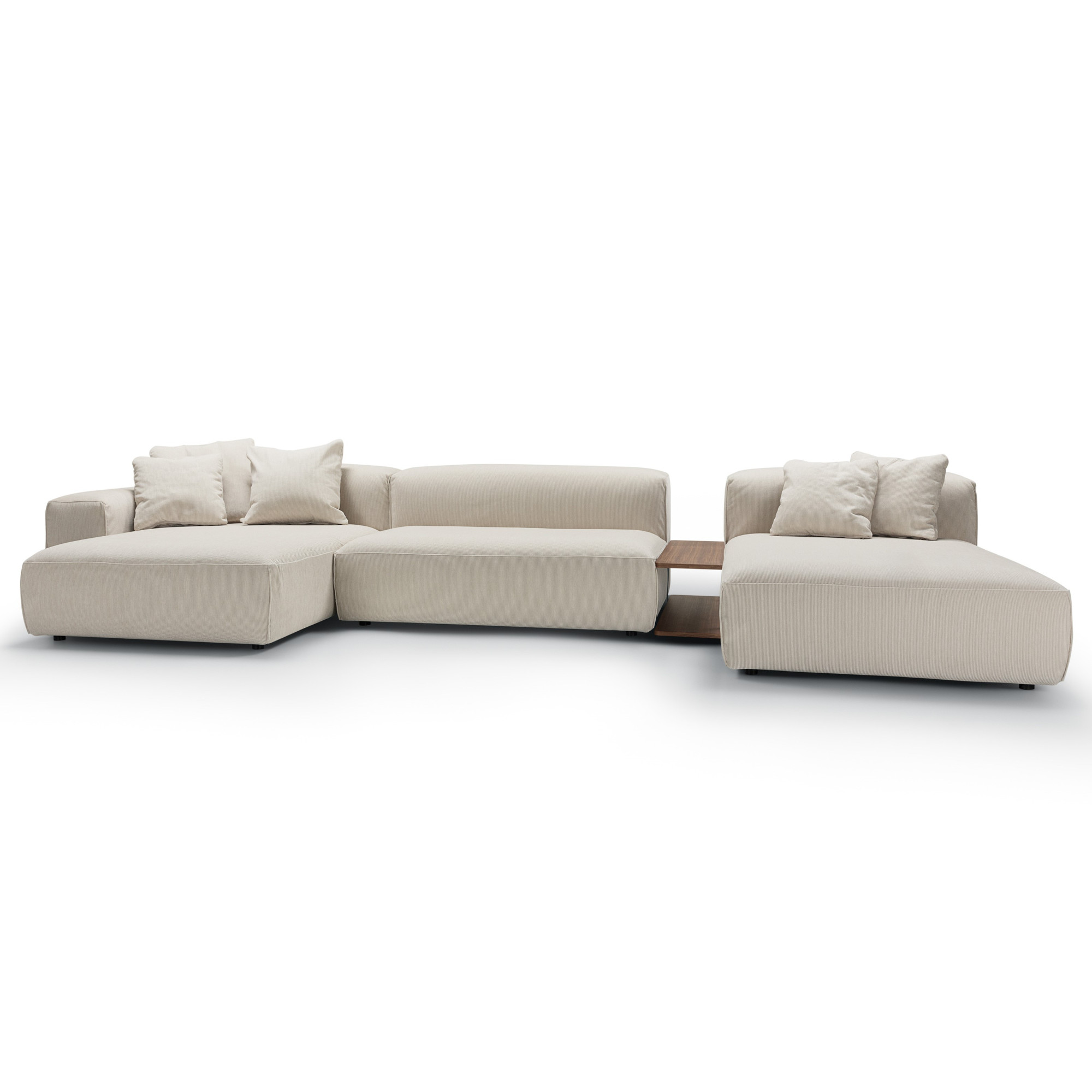 Edda to sofa modułowa zaprojektowana z myślą o nowoczesnych wnętrzach, w których liczą się elastyczność, komfort i swoboda aranżacji. Przestronny układ ze stolikiem kawowym o wymiarach 104 × 31 cm w wybarwieniu orzechowym tworzy funkcjonalną strefę wypoczynku, naturalnie integrując miejsce do siedzenia z praktycznym elementem użytkowym.