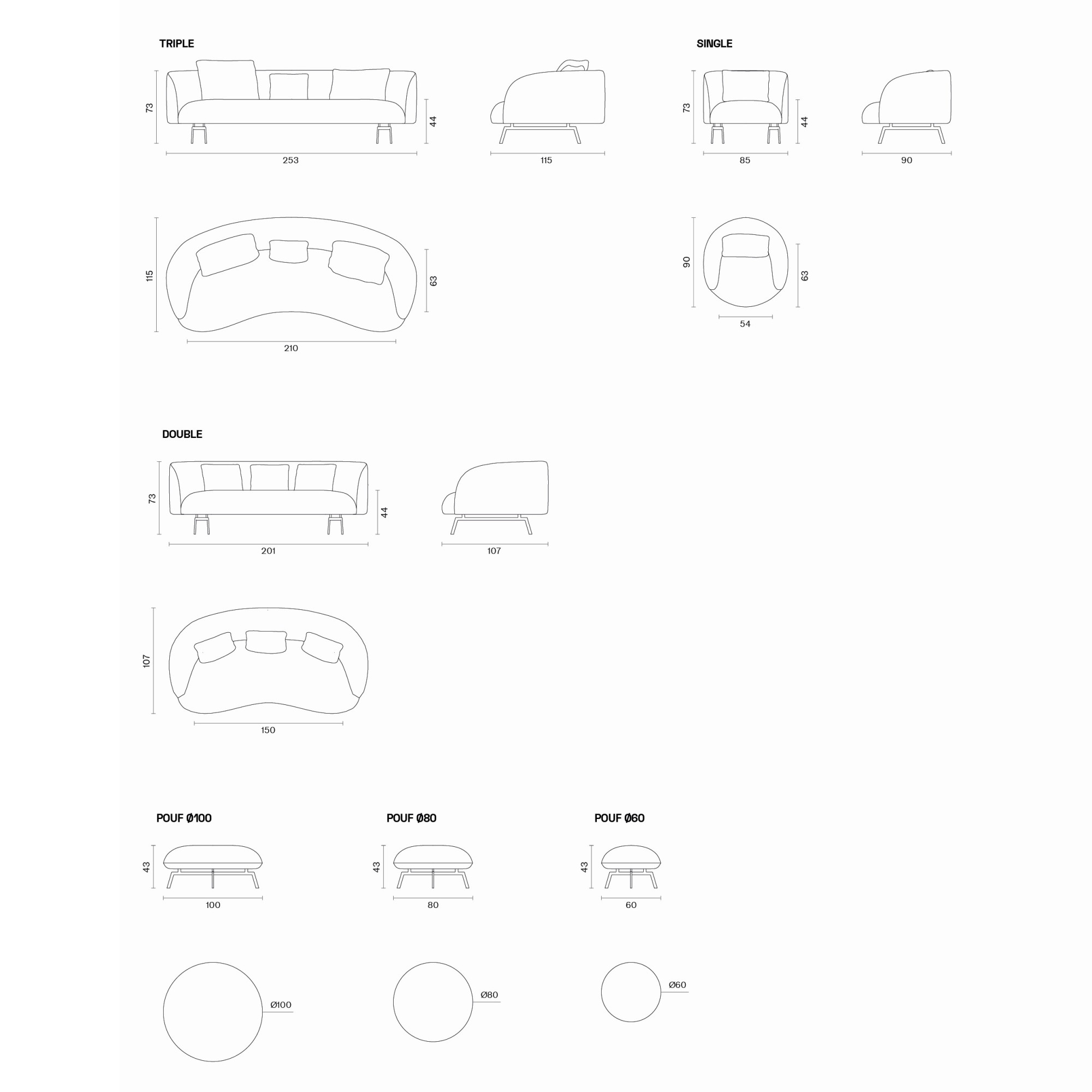 Luno to sofa, która wprowadza do wnętrza spokój i wyważoną elegancję. Jej rzeźbiarska, miękko zaokrąglona forma łączy współczesny minimalizm z ponadczasowym charakterem, tworząc naturalne poczucie komfortu i harmonii. Subtelnie zakrzywione linie oparcia i boków nadają bryle objętości oraz wizualnej miękkości, a niskie proporcje sprzyjają swobodnemu, lekkiego w odbiorze siedzeniu. Luno doskonale odnajduje się zarówno w domowych salonach, jak i w przestrzeniach komercyjnych recepcjach, poczekalniach czy lobby hotelowych także jako mebel wolnostojący, piękny z każdej strony.
