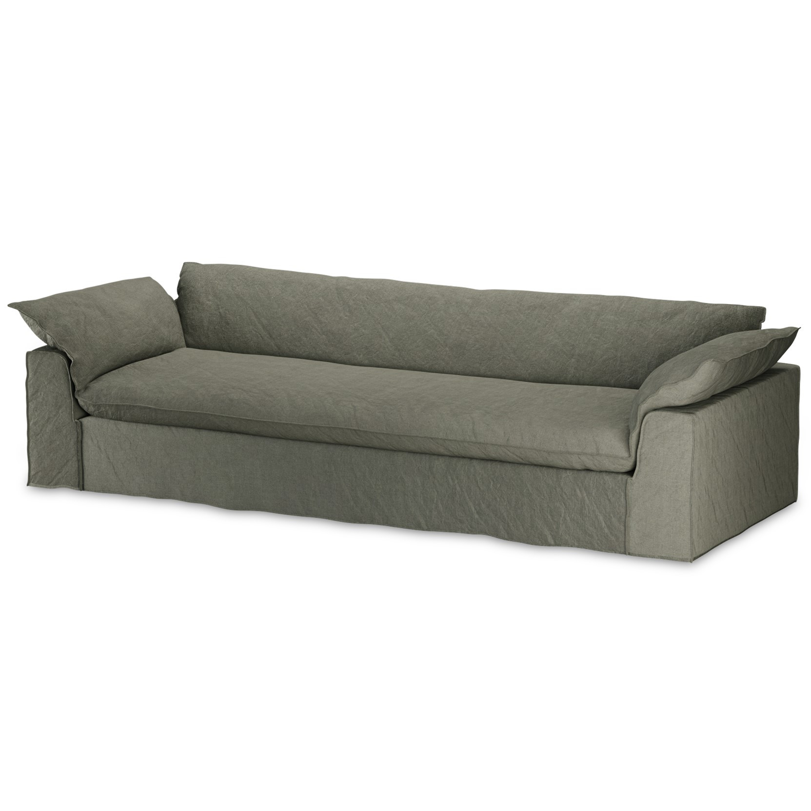 Sofa Nomad holenderskiej marki HKLiving to kwintesencja śródziemnomorskiej swobody zamknięta w nowoczesnej, minimalistycznej formie. Inspirowana klimatem butikowych hoteli południowej Europy, zachwyca naturalną lekkością i przytulnością, które zapraszają do zanurzenia się w miękkie, głębokie siedzisko. Wykonana z 100% lnu w odcieniu Army Green, łączy surową elegancję z domowym ciepłem, tworząc idealną przestrzeń do relaksu.