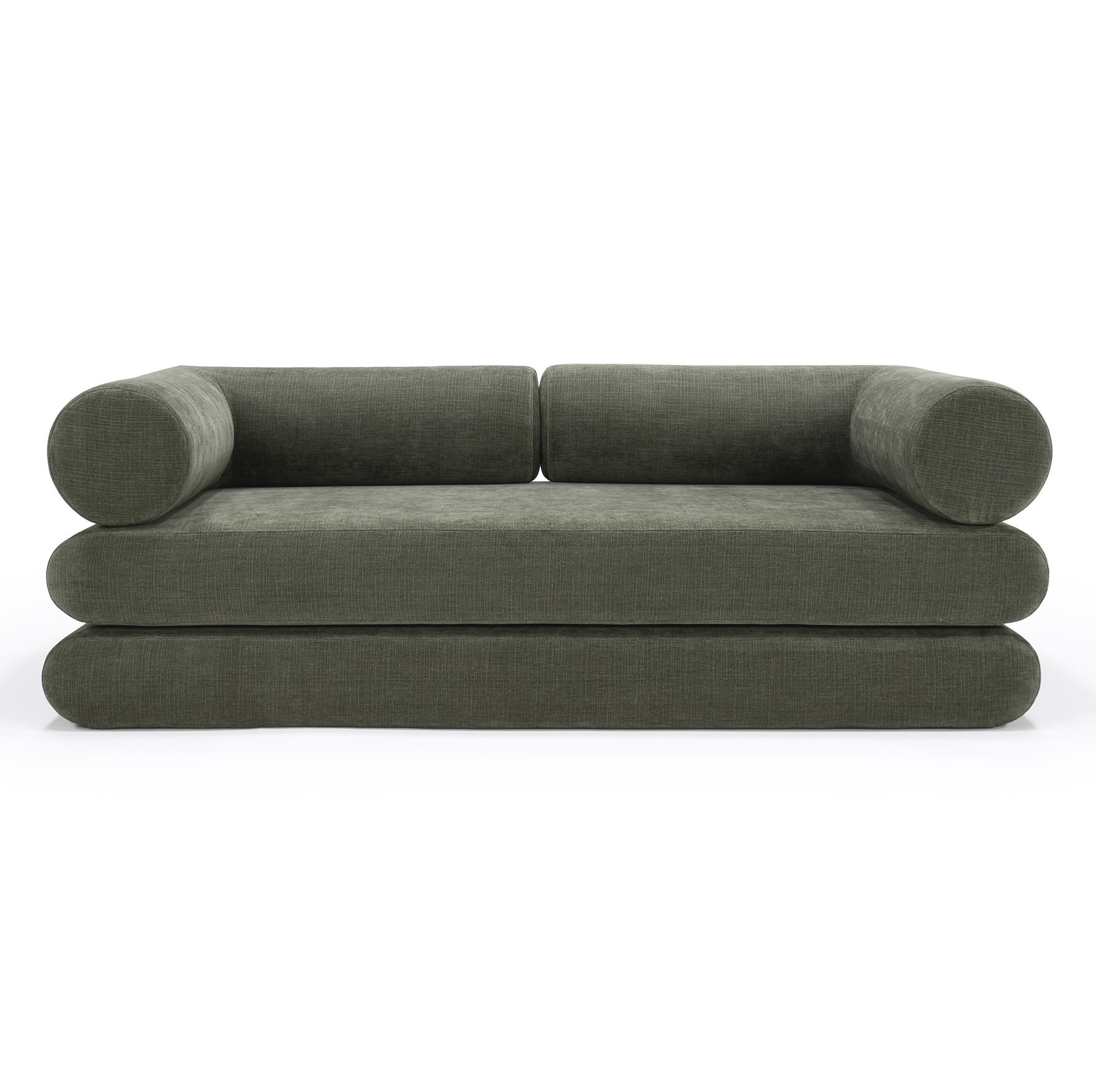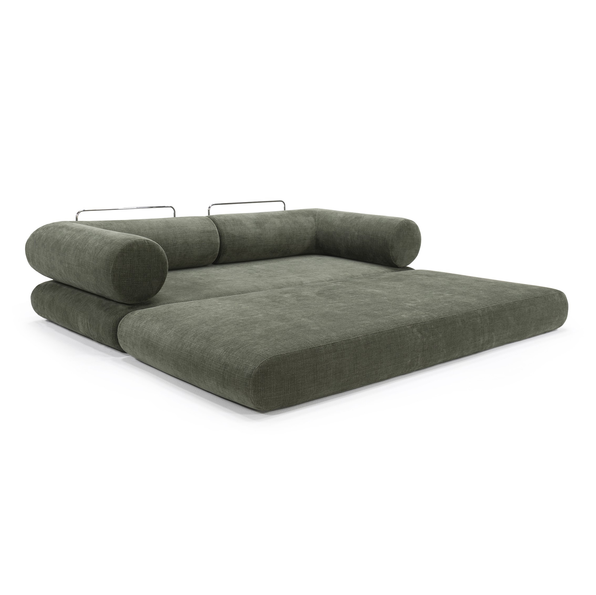 Sofa rozkładana Circlus L-Shape marki Innovation Living to wyrafinowany design inspirowany stylem lat 70., w którym centralnym motywem jest geometria koła i miękka, rzeźbiarska forma. Ta nowoczesna sofa łączy funkcję sofy, strefy relaksu i wygodnego łóżka, oferując pełną elastyczność w codziennym użytkowaniu. Może pełnić rolę podwójnego łóżka lub dwóch osobnych miejsc do spania, co czyni ją wyjątkowo praktycznym rozwiązaniem do nowoczesnych wnętrz.