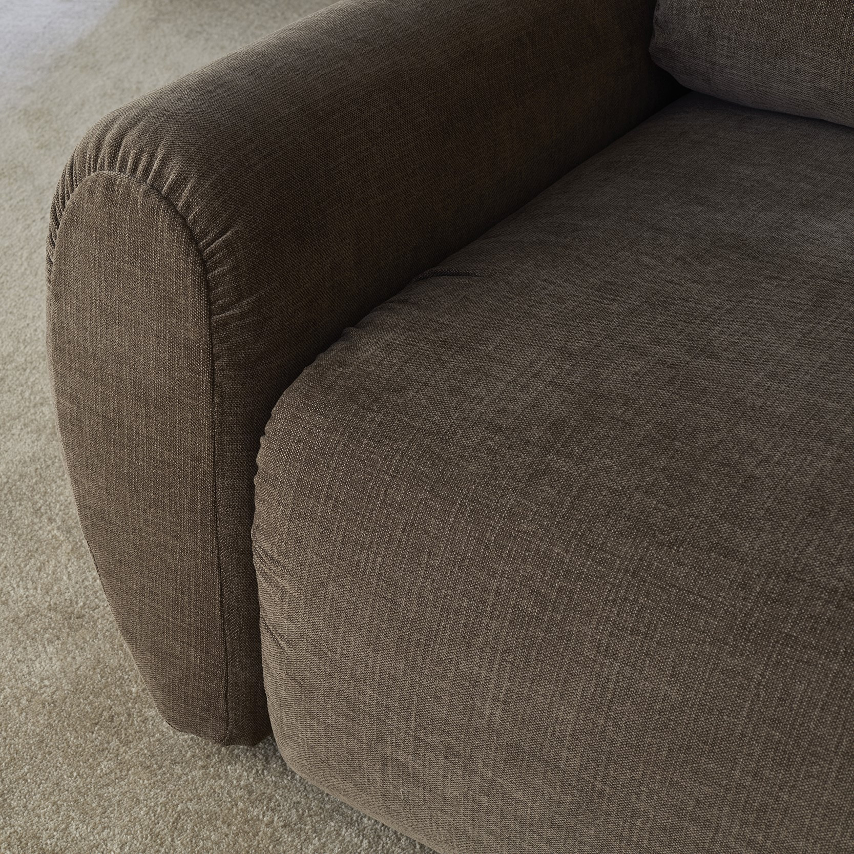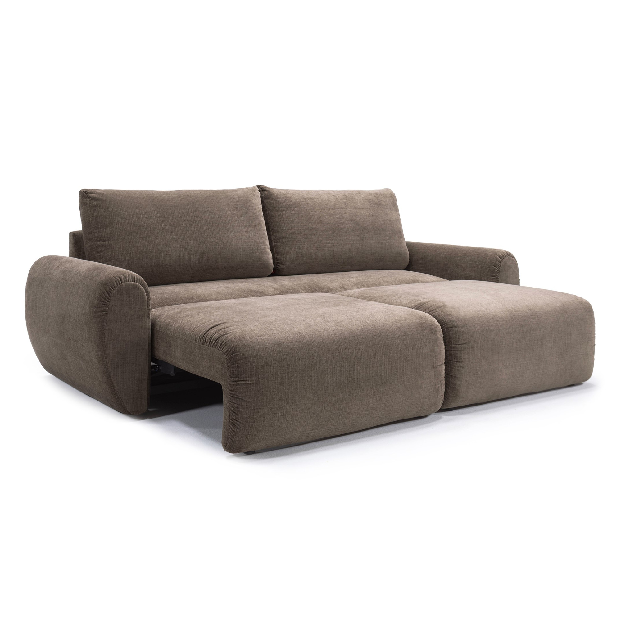 Nowoczesna sofa rozkładana w stylu „Family Lounger”, zaprojektowana z myślą o maksymalnym komforcie i codziennym relaksie. Miękkie, zaokrąglone podłokietniki oraz swobodna, lekko „żyjąca” tapicerka z naturalnymi marszczeniami nadają jej przytulny, niewymuszony charakter inspirowany designem lat 70.