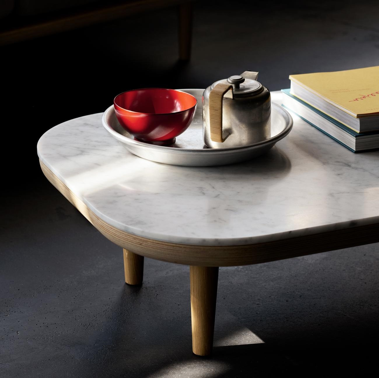 Stolik kawowy Fly SC5 marki &Tradition to esencja skandynawskiego designu w luksusowym wydaniu. Zaprojektowany przez duet Space Copenhagen, łączy naturalne piękno dębu z ponadczasową elegancją marmuru. Podstawa z litego, olejowanego dębu (Oiled Oak) harmonijnie współgra z blatem z marmuru Bianco Carrara, którego satynowa, honowana powierzchnia podkreśla subtelne, szare użylenie kamienia i dodaje wnętrzu lekkości. Marmurowy stolik kawowy, który z pewnością wprowadzi do przestrzeni spokój, klasę i wyrafinowany minimalizm.