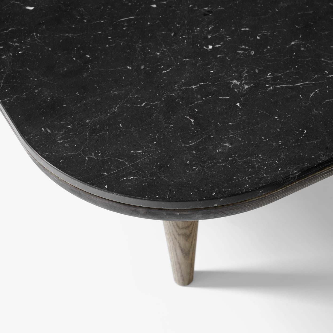 Stolik kawowy Fly SC5 marki &Tradition to esencja skandynawskiego designu w luksusowym wydaniu. Zaprojektowany przez duet Space Copenhagen, łączy naturalne piękno dębu z ponadczasową elegancją marmuru. Podstawa z litego, dymionego dębu o olejowanym wykończeniu harmonijnie współgra z blatem z marmuru Nero Marquina, którego satynowa, honowana powierzchnia podkreśla głębię czerni i subtelne, białe użylenie kamienia. Marmurowy stolik kawowy, który z pewnością wprowadzi do wnętrza spokój, klasę i wyrafinowany minimalizm.