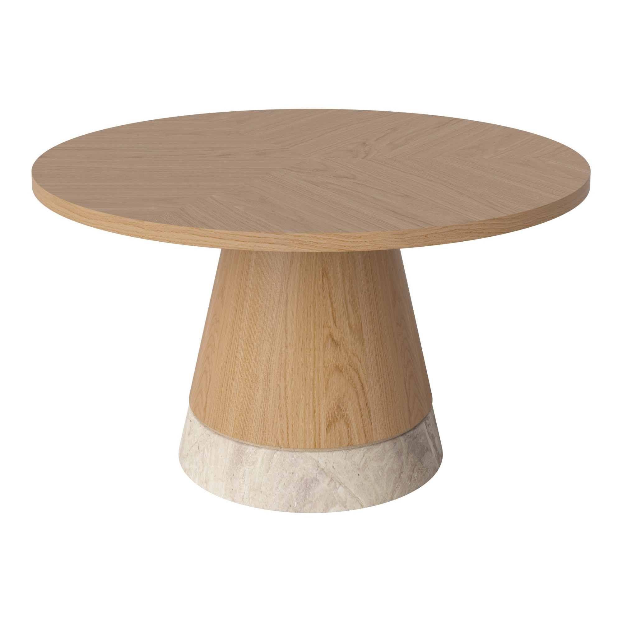 Stolik kawowy Piro Bolia to kwintesencja skandynawskiego designu – naturalna elegancja, minimalizm i perfekcyjne rzemiosło. Zaprojektowany przez Michaela H. Nielsena, zachwyca połączeniem olejowanego dębu i beżowego marmuru, tworząc wyjątkowy, nowoczesny stolik kawowy do każdego wnętrza. Solidna, stożkowa kolumna i kamienna podstawa zapewniają stabilność, a delikatna forma wnosi harmonię do nowoczesnego salonu.