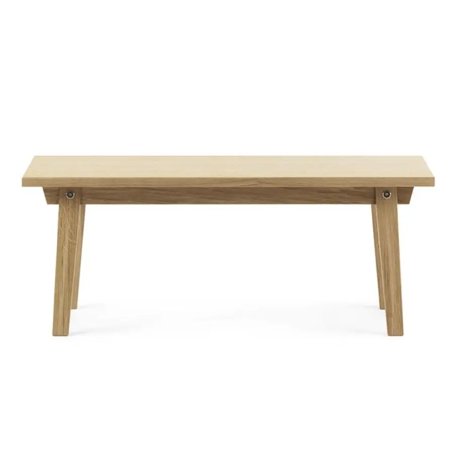 Stolik kawowy z serii dębowych mebli Slice marki Normann Copenhagen to dedykacja przede wszystkim dla osób poszukujących naturalnego akcentu do swoich wnętrz. Fornirowany blat stolika o wymiarach; 100x42 cm dla kontrastu został podkreślony litym drewnem dębu w podstawie. Wykończenie mebla lakierowane.