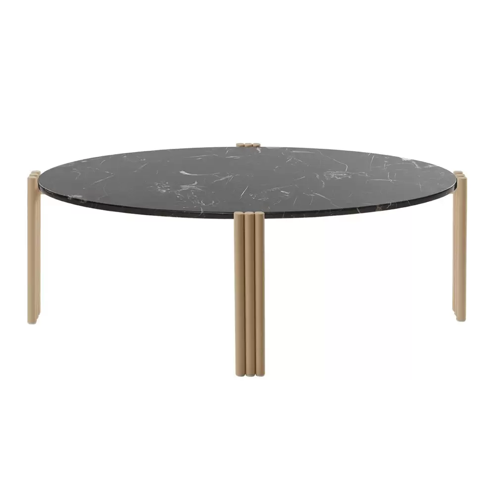 Stolik występuje w kilku wariantach kolorystycznych zarówno blatu z kamienia jak i metalowej podstawy (model prezentowany posiada blat marmurowy czarny i podstawę metalową lakierowaną na kolor piaskowy).