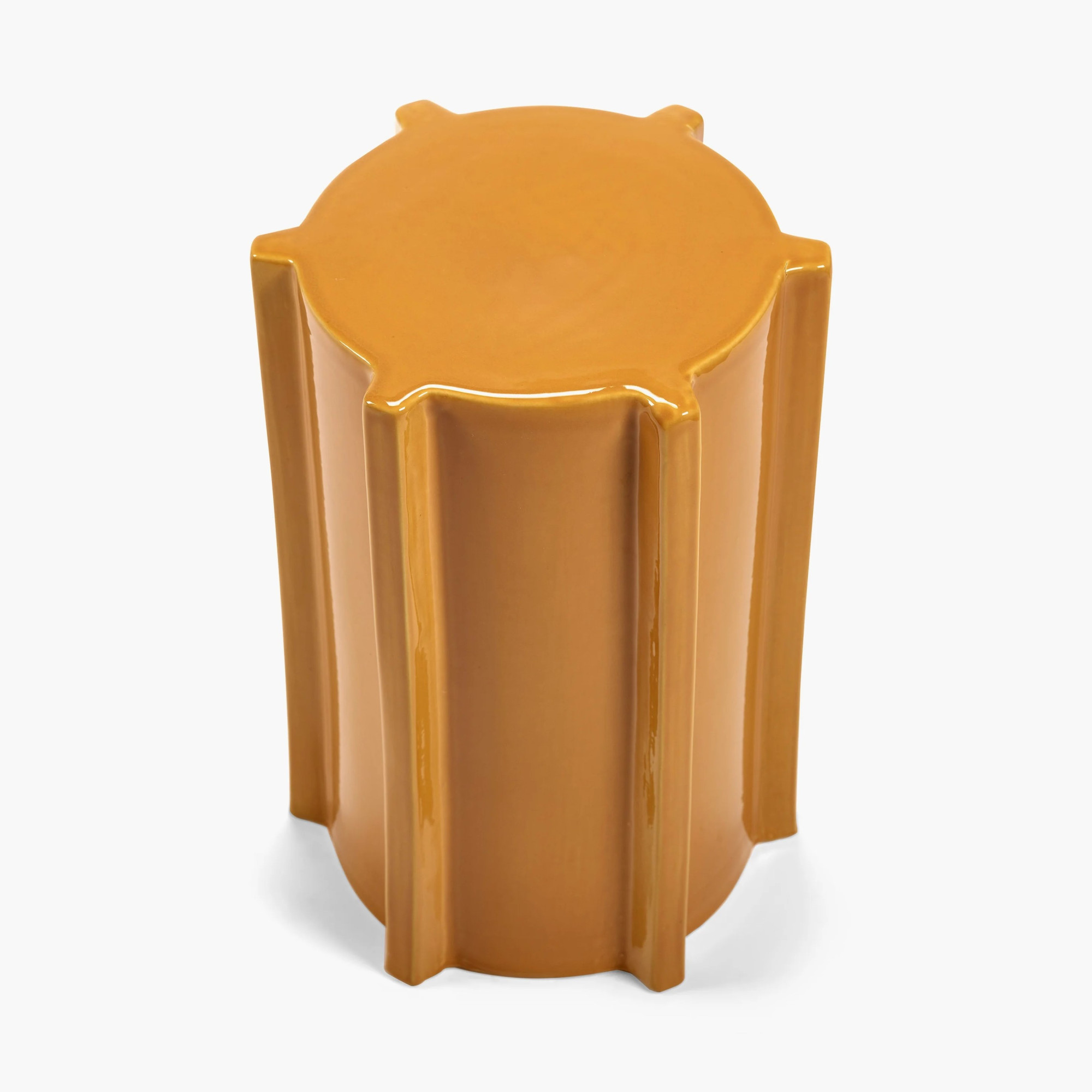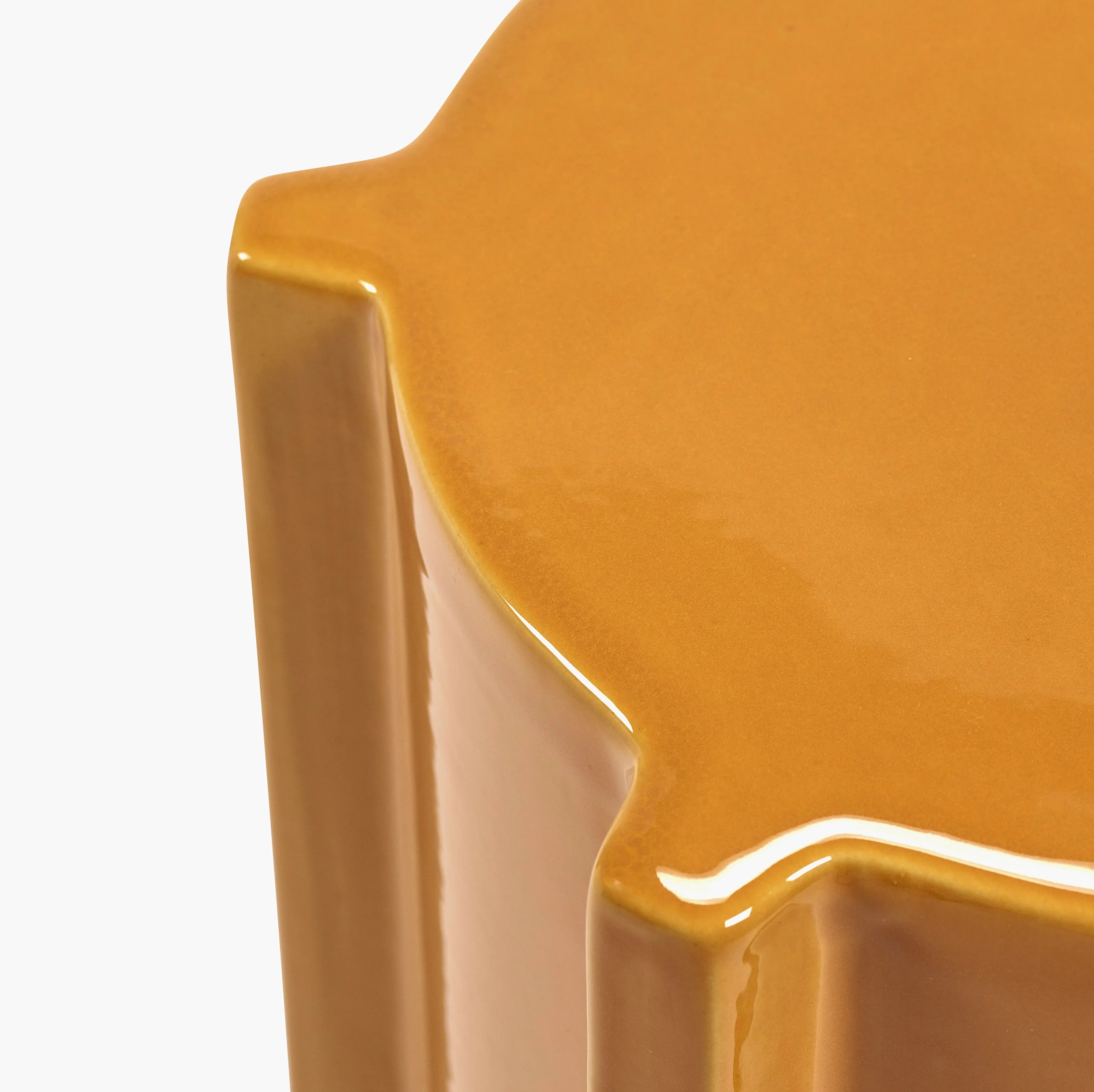 Stolik okazjonalny Pawn belgijskiej marki Serax to funkcjonalny, dekoracyjny akcent, który z pewnością ociepli każde, współczesne wnętrze. Wykonany z glazurowanej kamionki w energetycznym kolorze ochry, urzeka geometryczną formą i wyrazistą sylwetką. Charakterystyczne poziome żłobienia nadają mu rytm, głębię i wyjątkową fakturę, a jednocześnie ułatwiają przenoszenie.