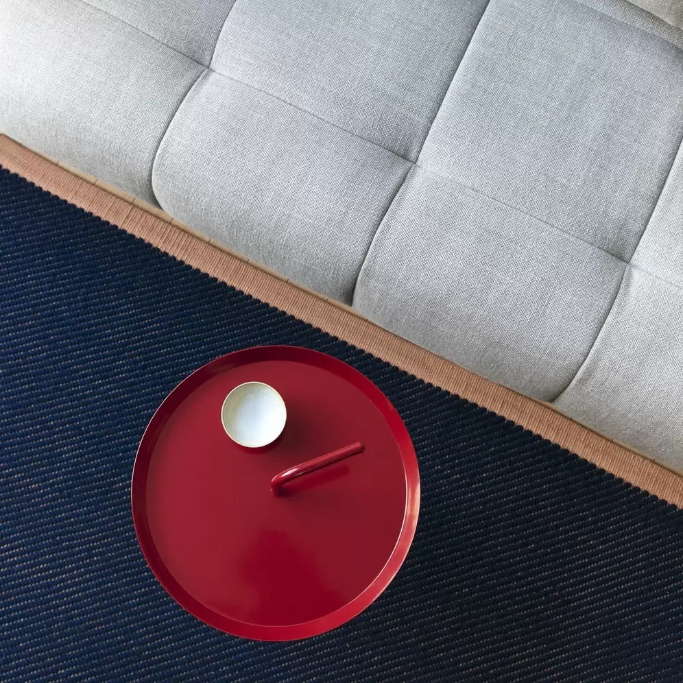 Don't Leave Me to przenośny stolik z katalogu uwielbianej przez klientów, duńskiej marki HAY. Ten filigranowy, wykonany ze stali malowanej proszkowo stolik boczny posiada wygodny uchwyt, który pozwala przenosić go z miejsca na miejsce. Chociaż ma lekką i przenośną konstrukcję, trzy skośne nogi zapewniają dużą stabilność.