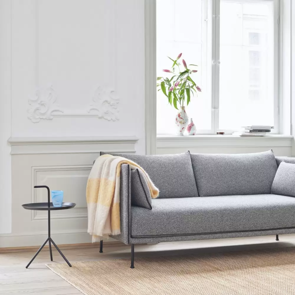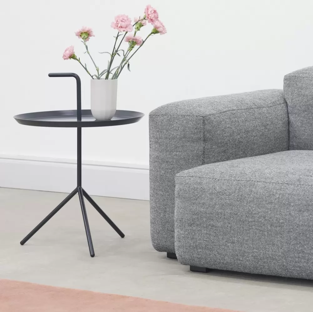 Don't Leave Me to przenośny stolik z katalogu uwielbianej przez klientów, duńskiej marki HAY. Ten filigranowy, wykonany ze stali malowanej proszkowo stolik boczny posiada wygodny uchwyt, który pozwala przenosić go z miejsca na miejsce. Chociaż ma lekką i przenośną konstrukcję, trzy skośne nogi zapewniają dużą stabilność.