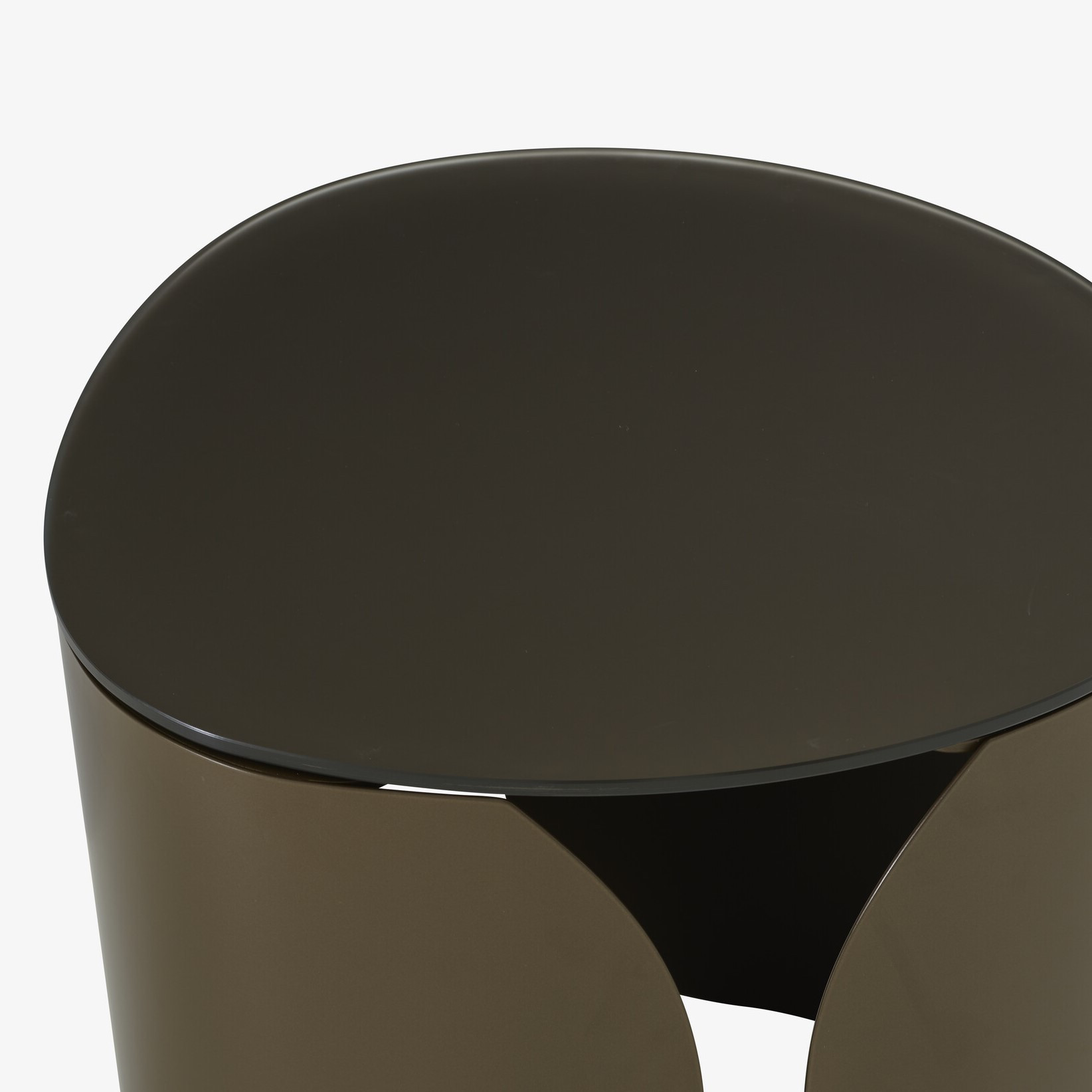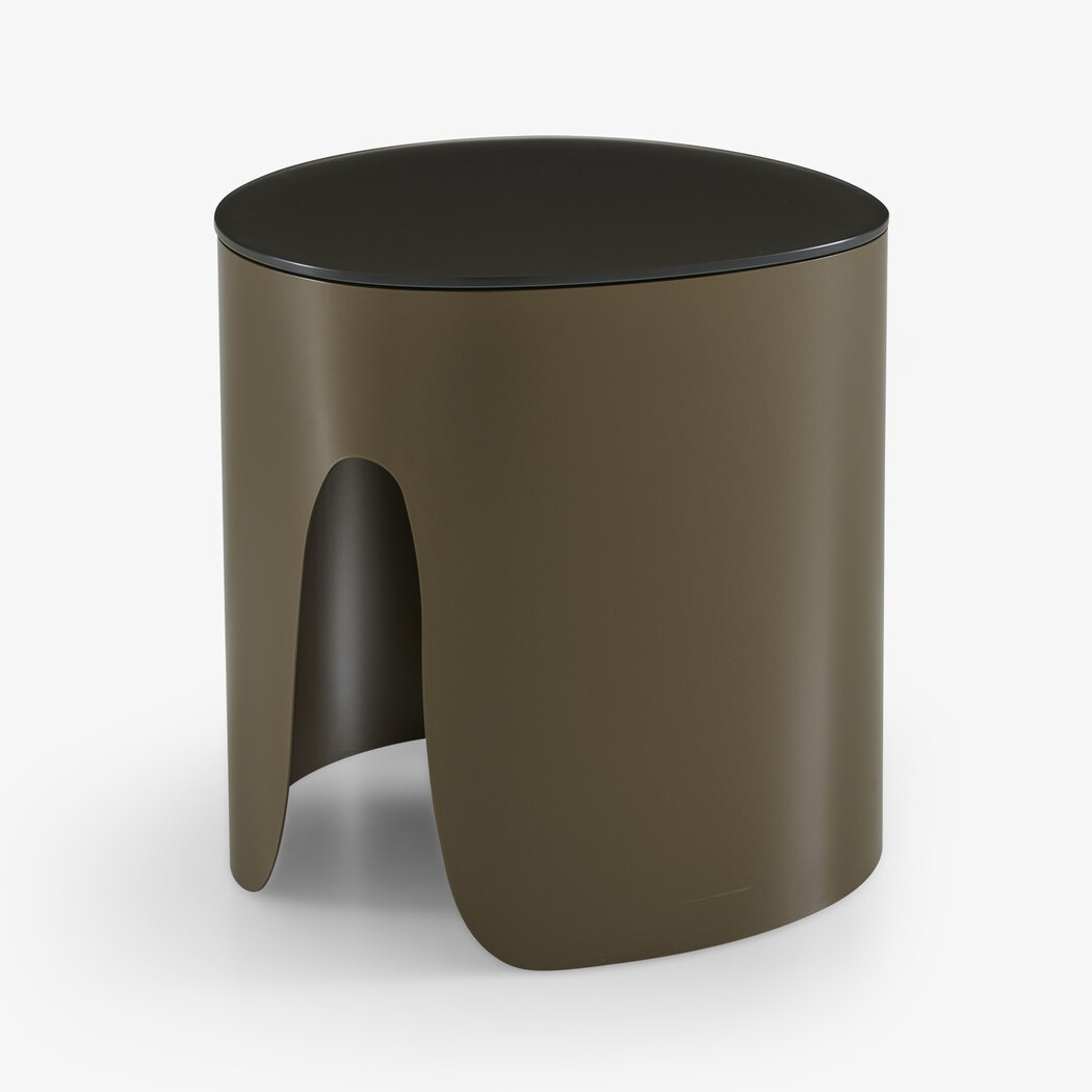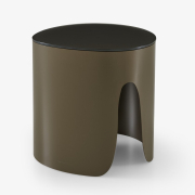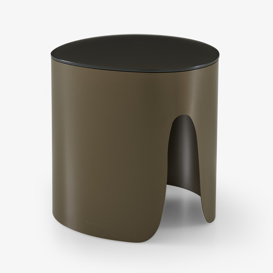 Model dostępny jest w dwóch luksusowych wariantach: szkło hartowane lakierowane brązowe (Bronze Lacquered Tempered Glass) oraz blat z czarnego marmuru Marquinia (Black Marquinia Marble Top). Wariant ze szkłem hartowanym wyróżnia się satynową dolną powierzchnią i matową górą, podkreślając elegancję i głębię koloru. Stalowa, lakierowana podstawa łączy stabilność z lekkością formy, a starannie dopracowane detale podkreślają nowoczesny, designerski charakter stolika.