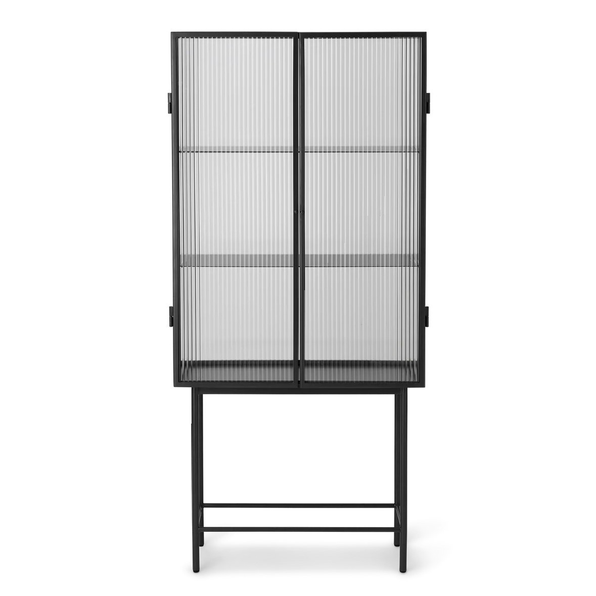 Minimalistyczna witryna z serii Haze duńskiej marki Ferm Living. Dzięki przemysłowemu wzornictwu z pewnością nada pomieszczeniu wyjątkowy, rustykalny charakter. Szklane, przewodowe ściany kontynuują wyrafinowany wyraz mebla eksponując jednocześnie zawartość gabloty.