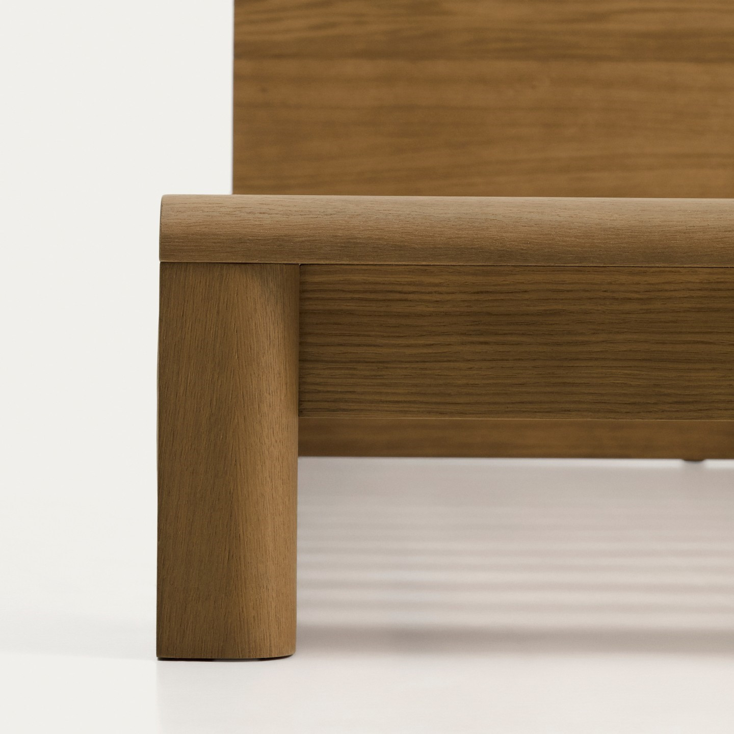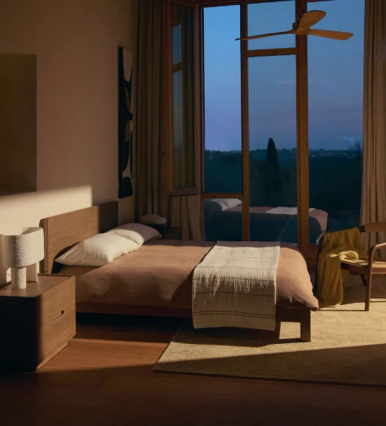 Łóżko dębowe z kolekcji Arelida hiszpańskiej marki Kave Home. Wykonane z forniru i litego drewna dębowego w jasnobrązowym wykończeniu, pięknie eksponuje naturalne usłojenie drewna. Gładkie linie i zaokrąglone krawędzie nadają bryle lekkości, a rama podstawy, lekko wystająca poza obręb łóżka, podkreśla wyrazistość drewna. Ozdobne, frezowane linie na zagłówku dodają subtelnego charakteru, dzięki czemu łóżko harmonijnie wpisuje się w aranżacje rustykalne, heritage oraz nowoczesne wnętrza inspirowane naturą.