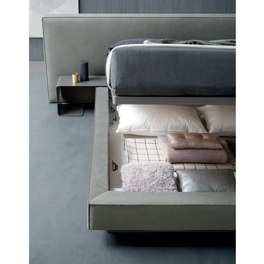 Łóżko tapicerowane Bora to współczesne wzornictwo znakomicie pasujące do minimalistycznych wnętrz. Rama w estetyczny sposób komponuje się z obszernym wezgłowiem, które nadaje całości eleganckiego wyglądu. Łóżko wyposażone jest w praktyczny pojemnik na pościel. Pokrowiec łóżka Bora jest luźny. W bardzo prosty sposób przypina się go do ramy oraz zagłówka za pomocą rzepów.